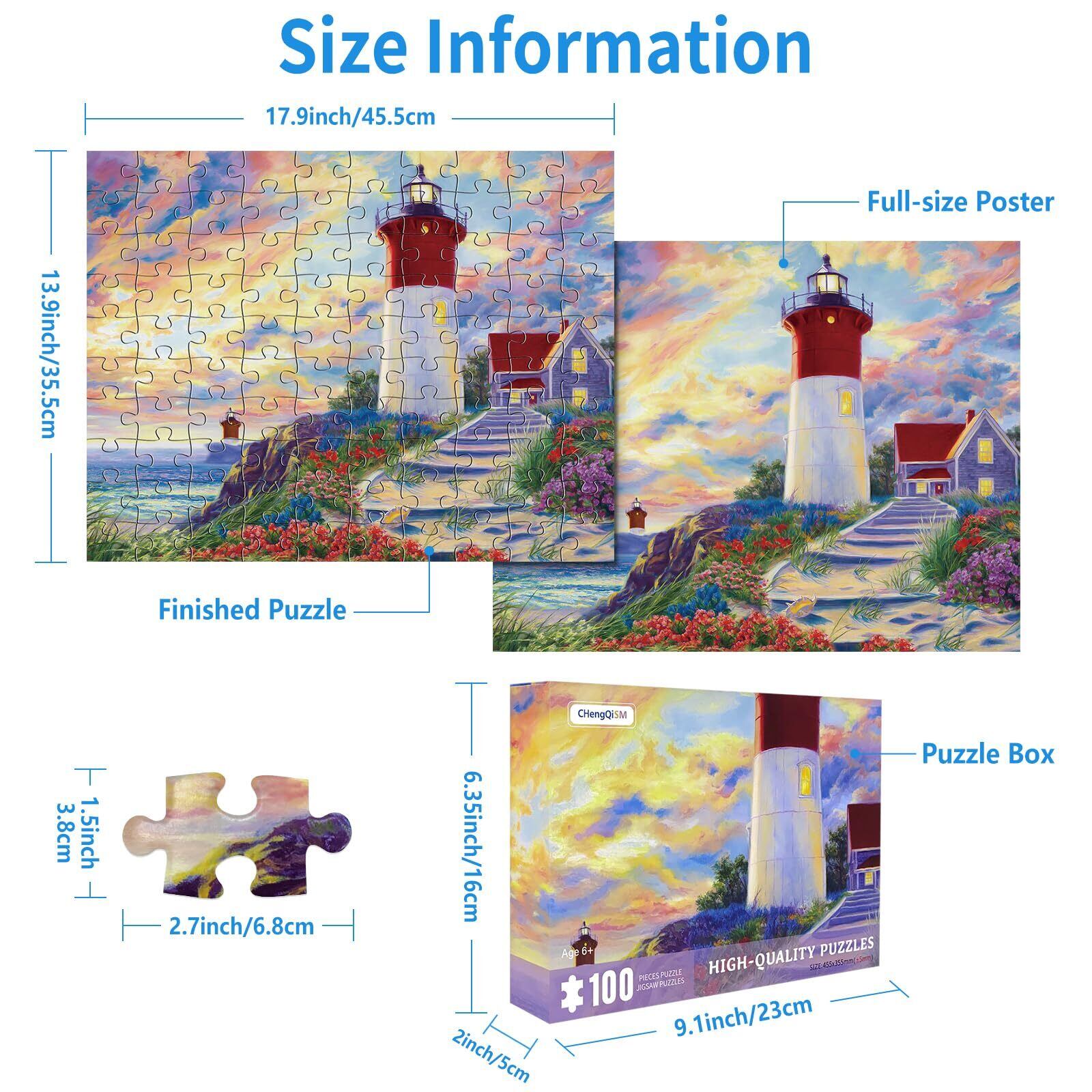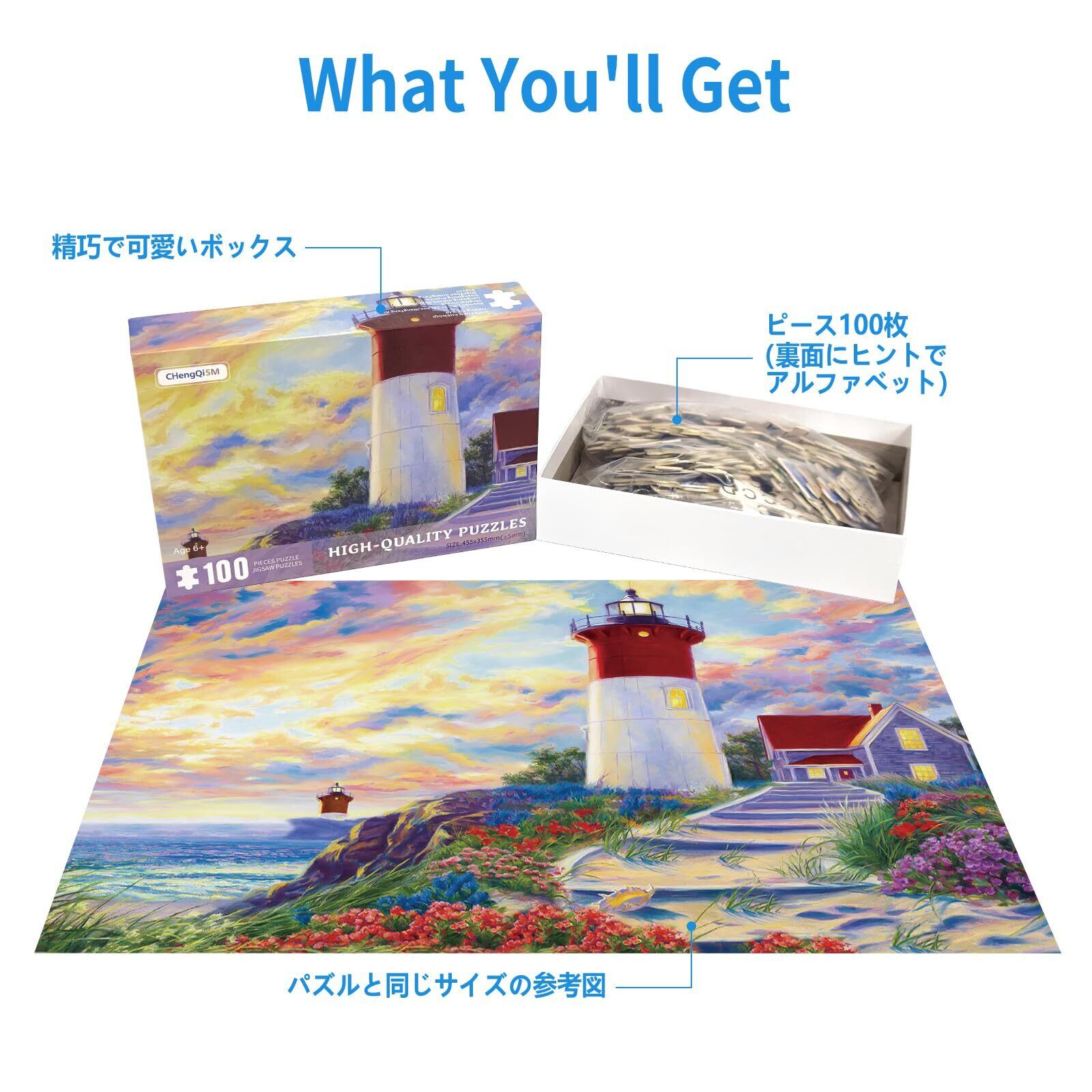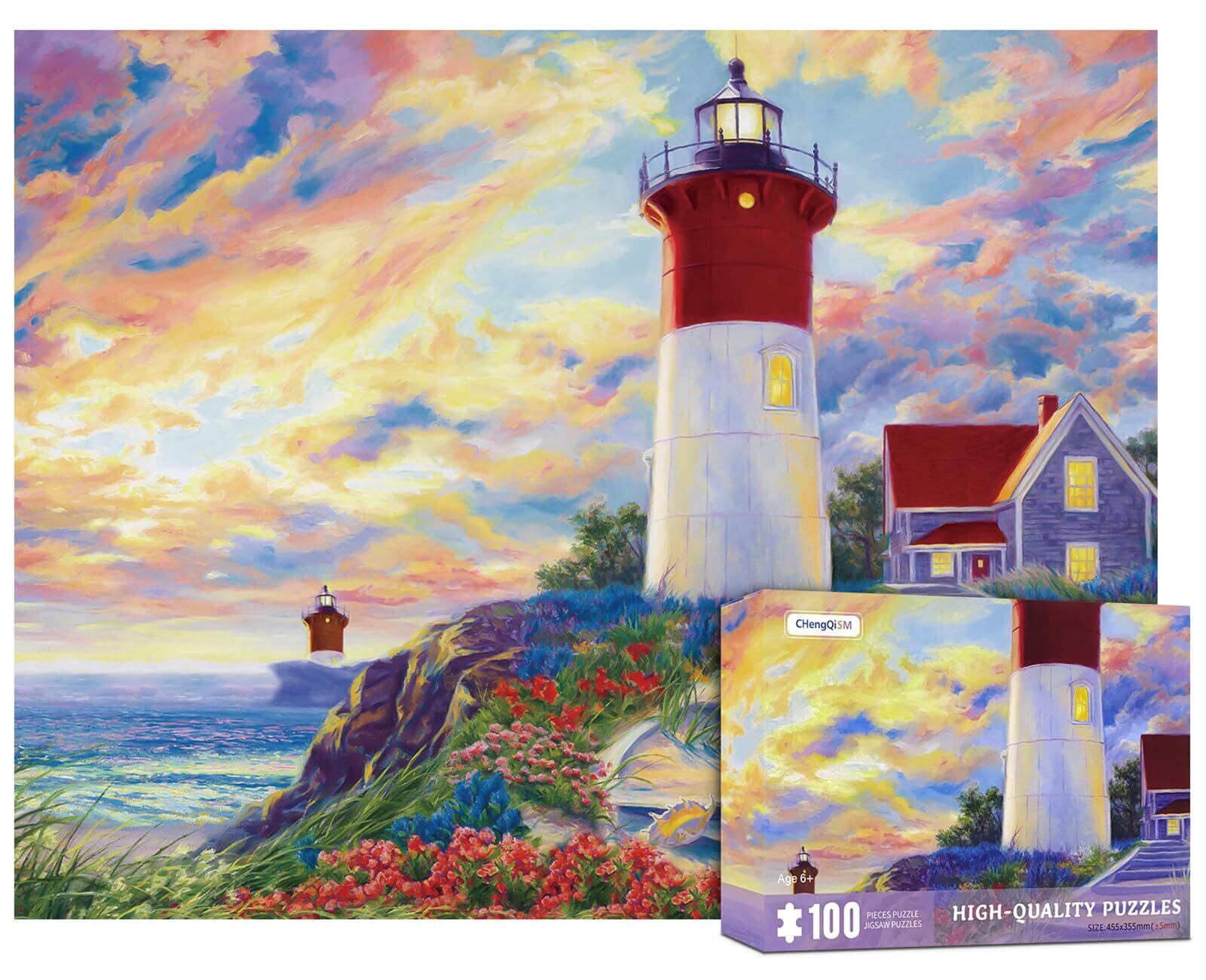 CHengQiSM 100ピース ジグソーパズル ラージピース 灯塔 100ピース パズル 絵画 子供&大人 ジグソーパズル 初心者 絵画 風景 花 空 海 おもちゃ 6歳以上 プレゼント(45x35cm) | BASE SHOP