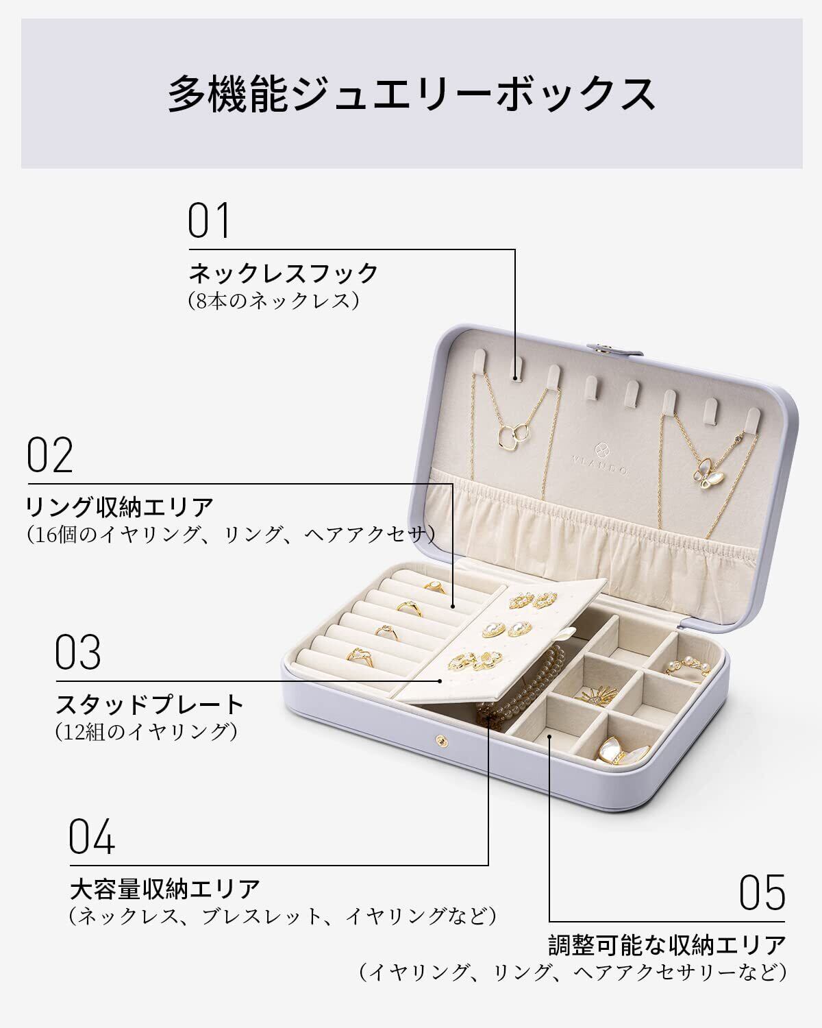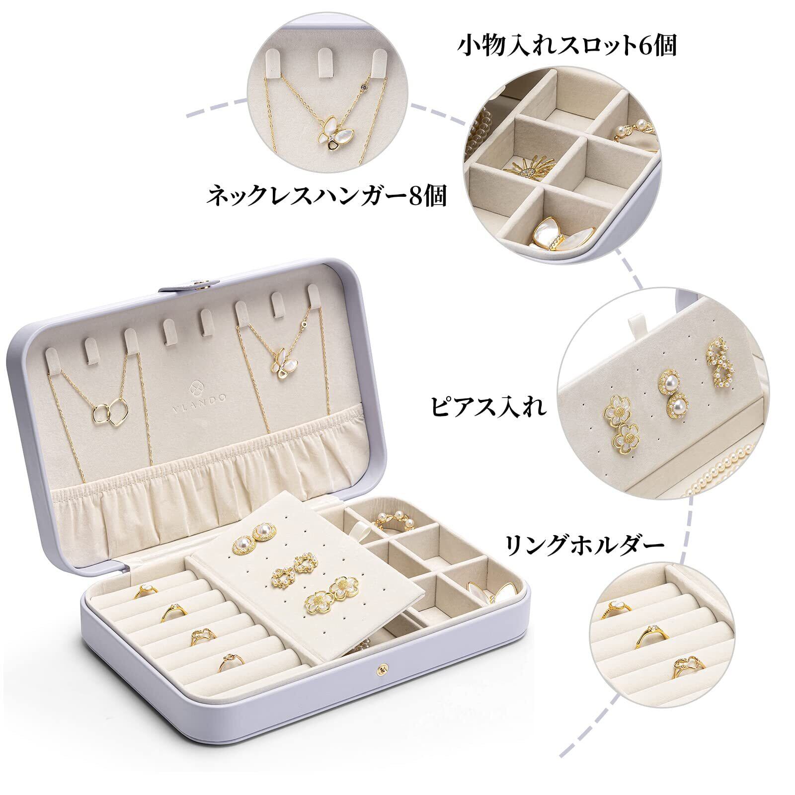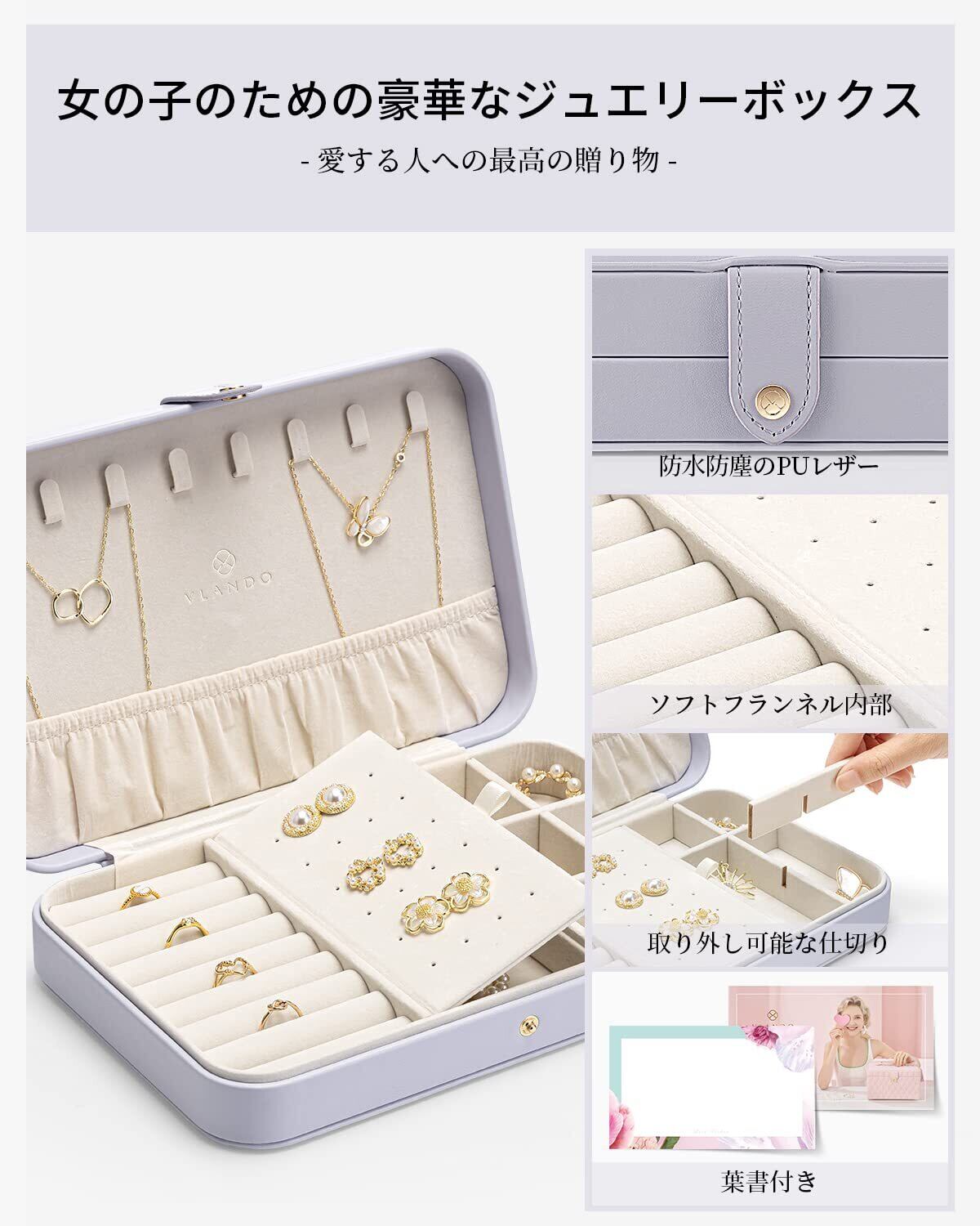 Vlando アクセサリーケース 携帯用 PUレザー ジュエリーボックス ジュエリーケース 持ち運び 仕切り付き 宝石箱 ジュエリーボックス リング ピアス ネックレス 女性 紫 | BASE SHOP