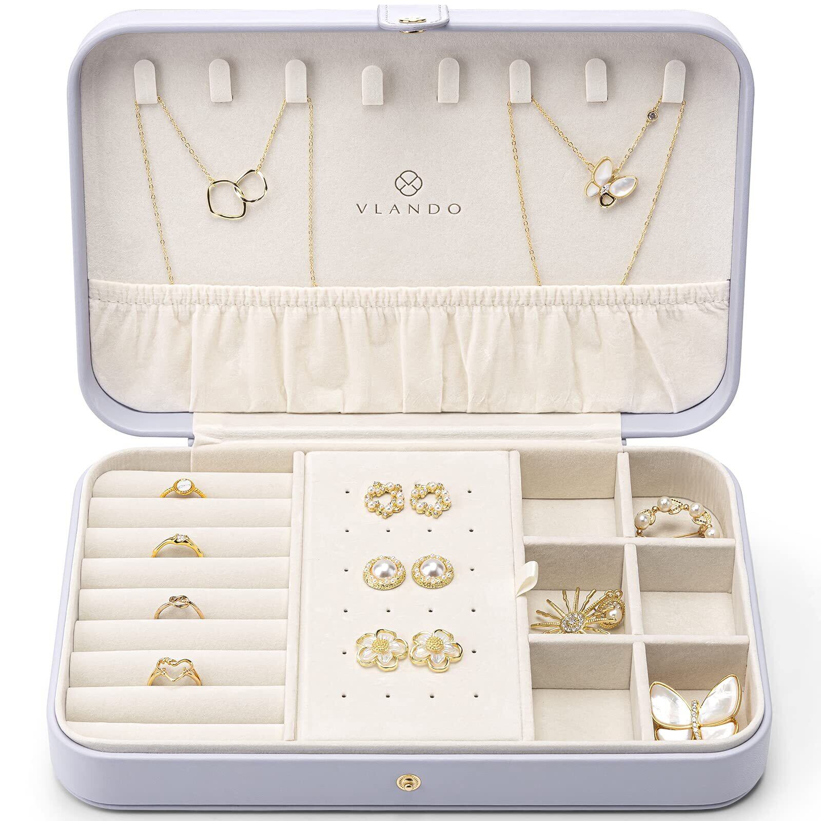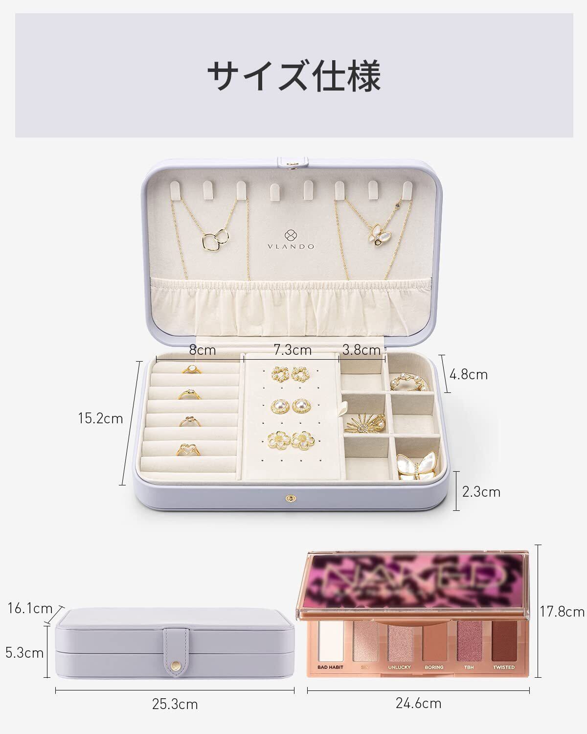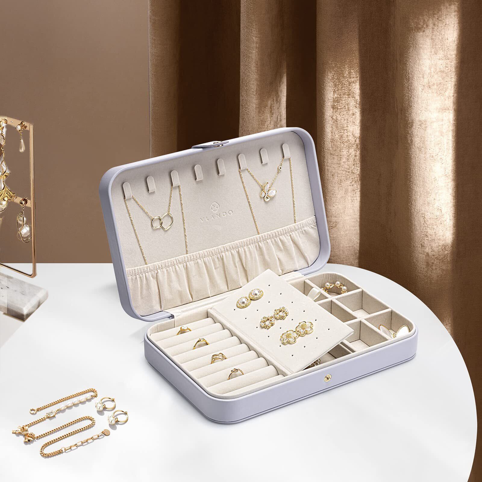 【クラシックなデザイン】Vlandoジュエリーケースは、クラシックで軽いデザインです。サイズは26 X 17.2 X 5.8 cm(長さ x 幅 x 高さ)、重さは0.49kgです。家のデコレーションとして飾ることもでき、旅行に持参してもかさばりません。選べる3色、かわいいものからエレガントなものまで、お客様のニーズを満たします。