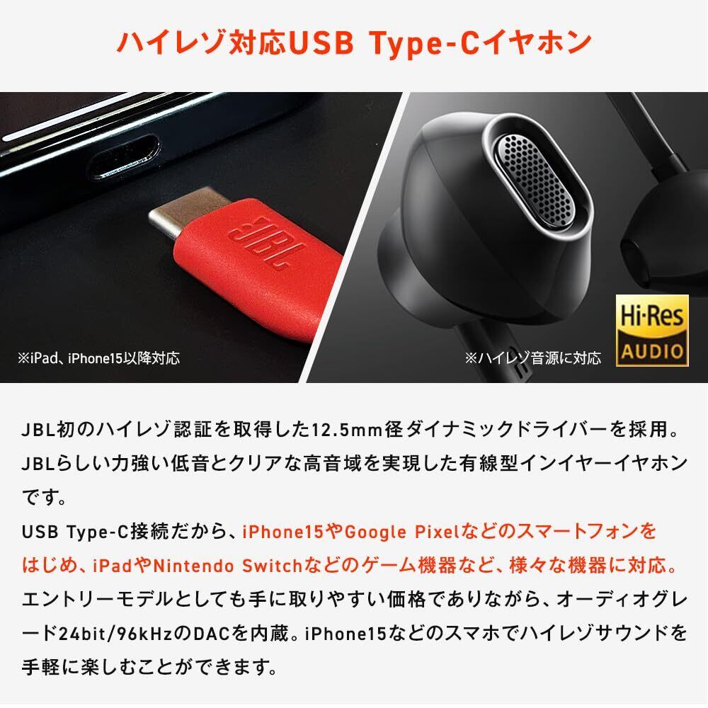 JBL TUNE 305C 有線インイヤーイヤホン ハイレゾ 96 kHz/24 bits プリセットEQ USB Type-C 12.5mmダイナミックドライバー オープンタイプイヤホン マイク内蔵 フラットケーブル (ホワイト)