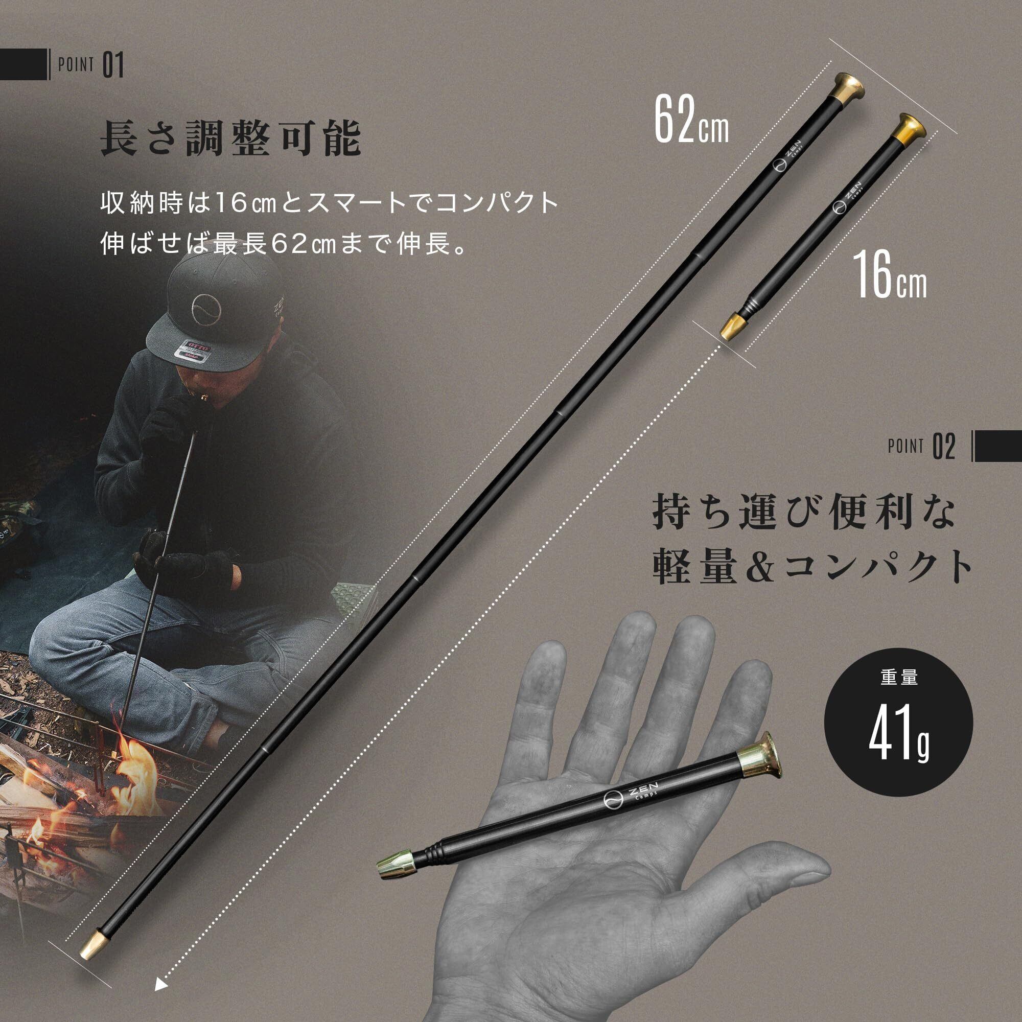【素材】ステンレス、真鍮 【重量】 本体:約41g 収納時:16cm 伸長時:62cm