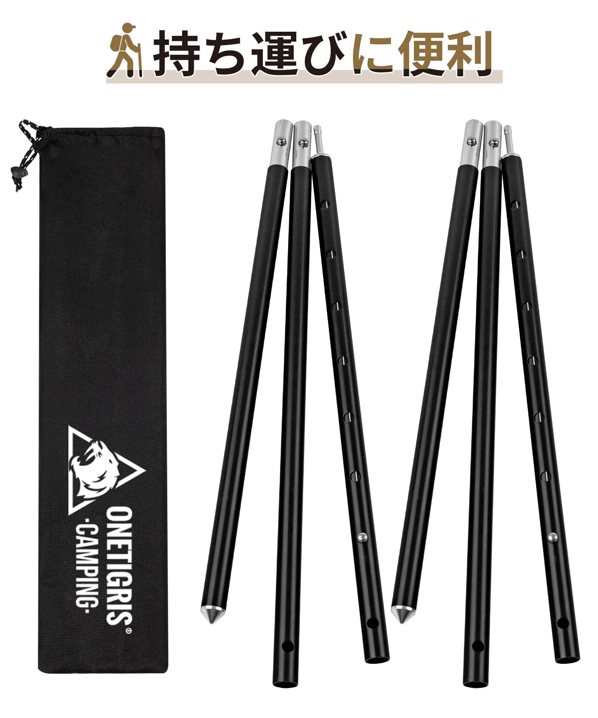 OneTigris テントポール 伸縮式 アルミポール 調節可能 テント/タープ/陣幕設営用 軽量 組み立て簡単 頑丈 耐久性あり 収納袋付き 4節ワンセット 2セット85.5cm~160cm | BASE SHOP