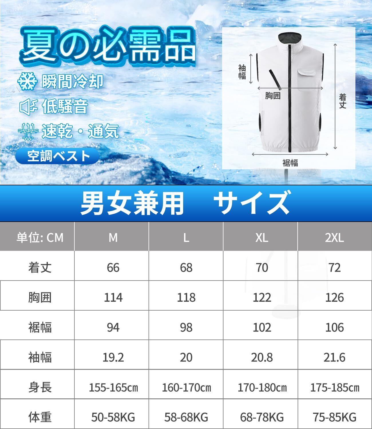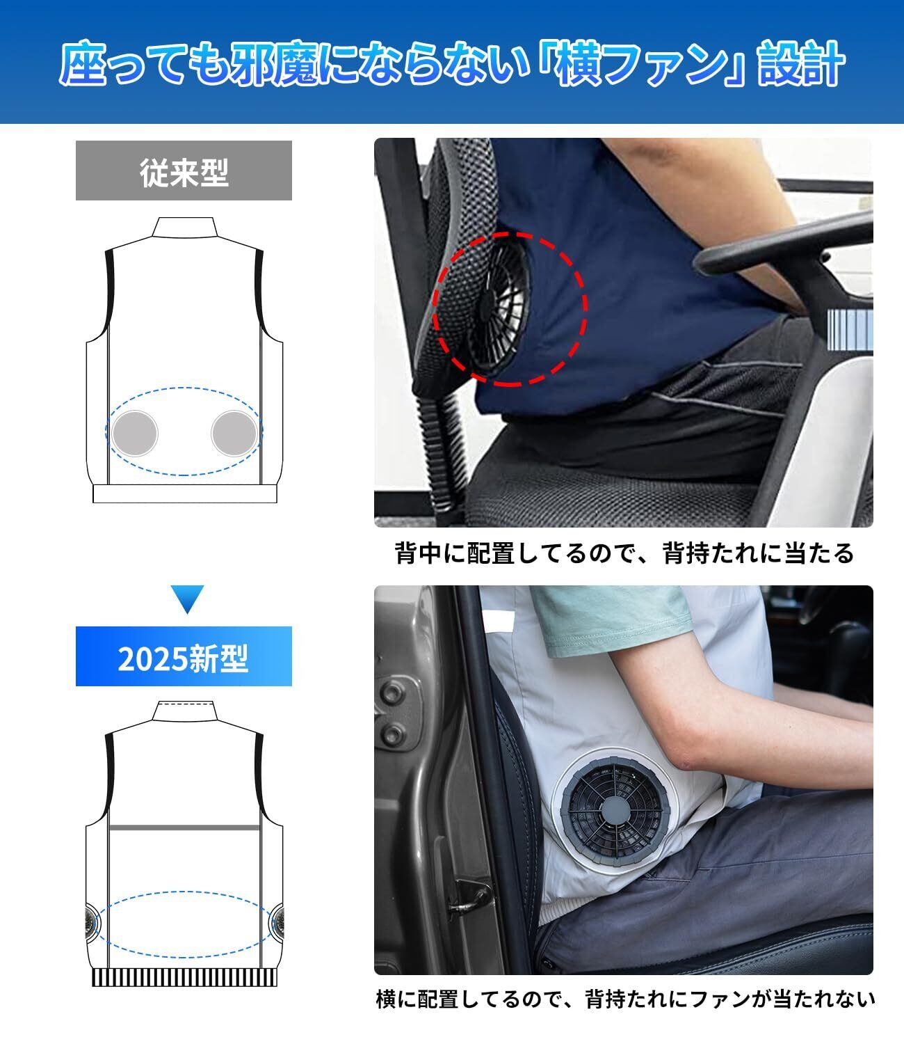 【2025最新のファン付きベストで猛暑対策】2025夏 28V空調ウェア ベストの新タイプが登場!ベストとファン、バッテリーのセット販売になります!より薄く、より強風量、より長持ちな最新ファンを搭載しました!作業服に取り付けられた24V暴風ファンは、新鮮で大量の空気の流れをつくり、作業中かいた汗を瞬時に蒸発させることができます。生地と肌の間に刺激がなく、湿疹などの心配がありません。撥水加工を施したので水汚れに強いし、UVカット加工が施されており、紫外線を約99%以上カットし、アウトドアや屋外の作業で日焼けも防ぎます。今年の夏はこの空調ベストで決まり!