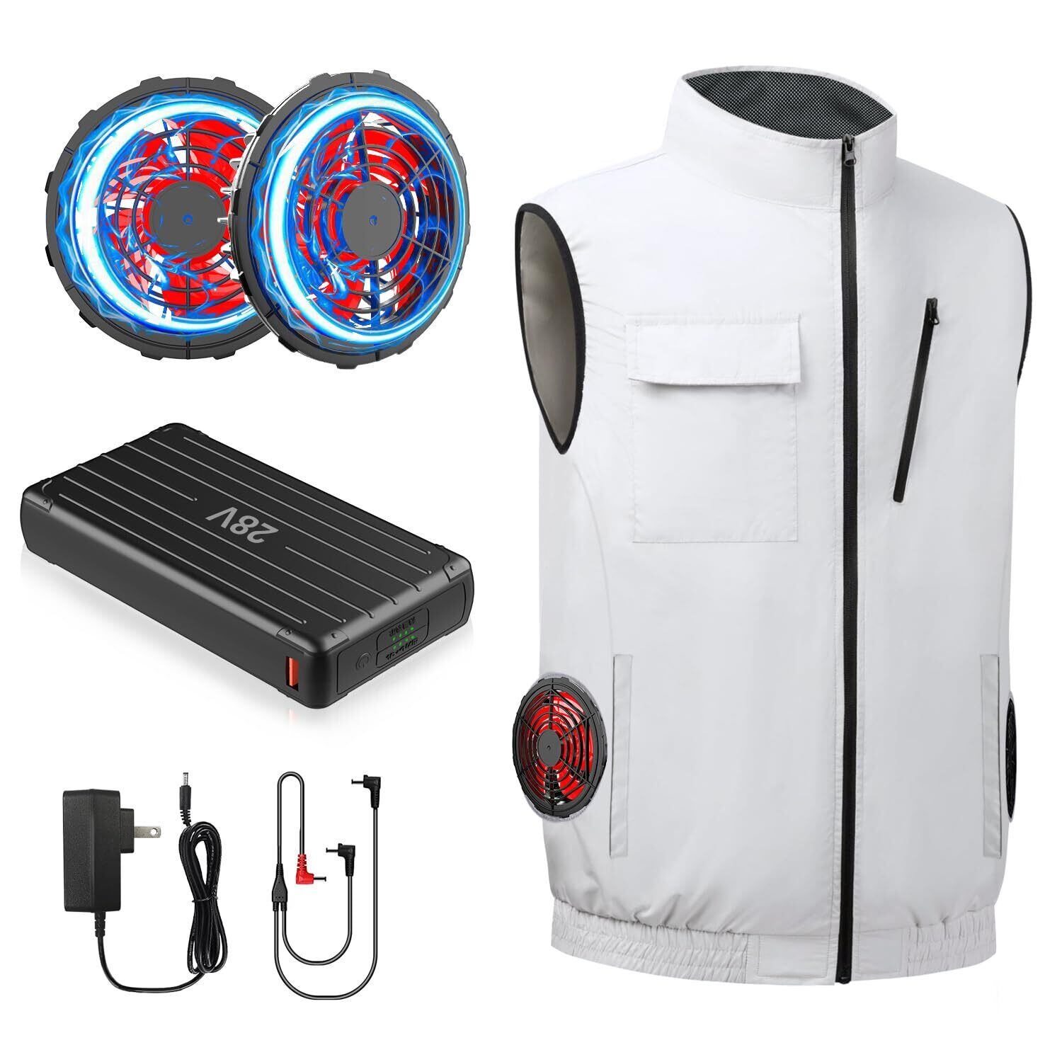 [FGTGGG] ファン付きベスト【2025新登場&28V超高出力ファンと30000mAh大容量バッテリー付き】 空調作業服 ファンバッテリーセット 4段階風量調節可 最大28時間連続稼働可能 UPF50+吸汗速乾 ファン付き作業服 猛暑対策