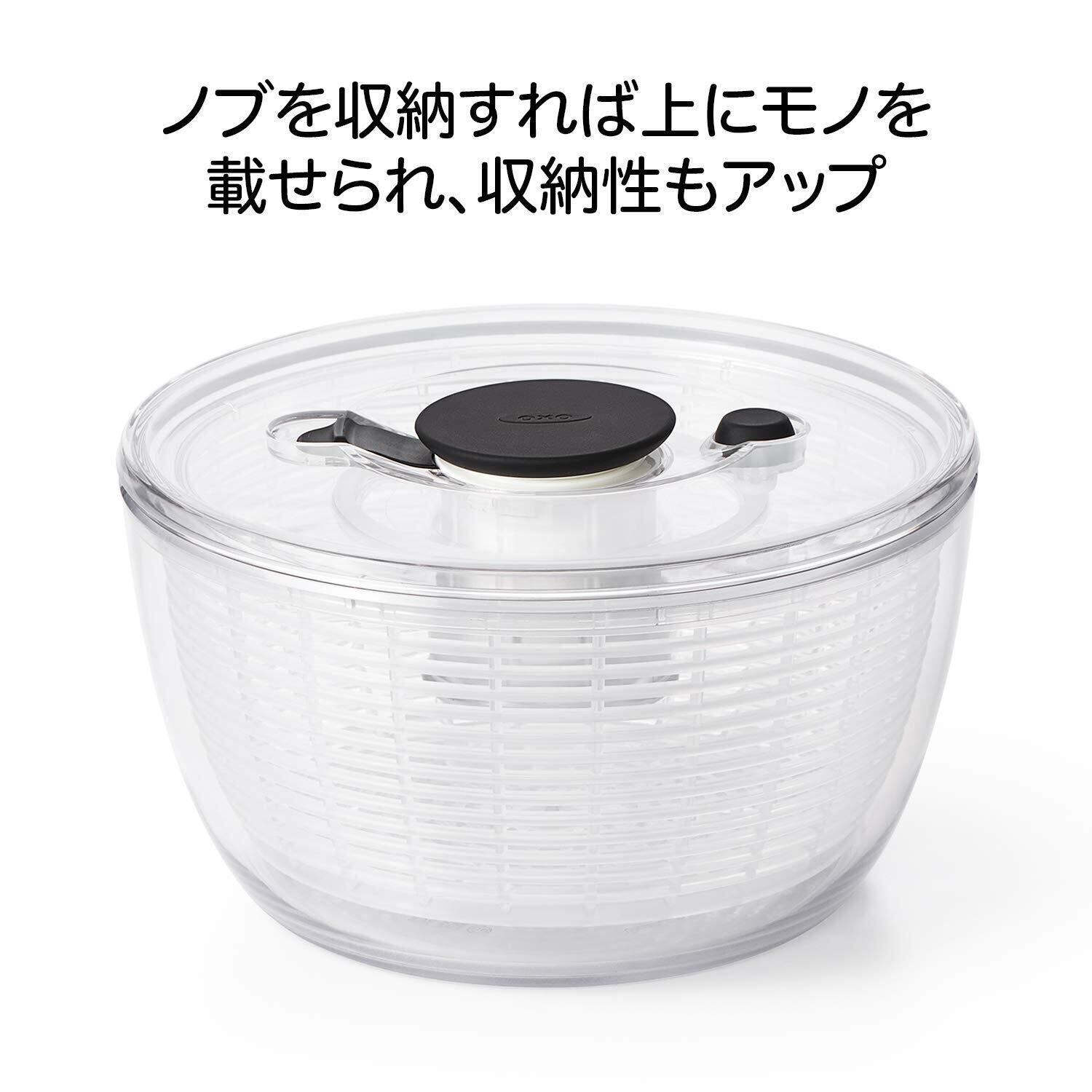 OXO サラダスピナー 野菜水切り器 小 丸型 2~3人分 一人暮らし 20.5×20.5×12cm 食器洗い乾燥機(低温設定)可