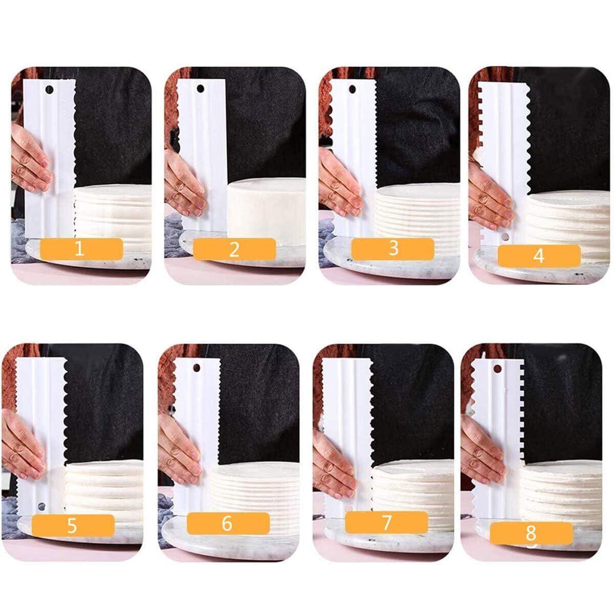 ケーキスクレーパー 4本セット プラスチック デコレーションコーム ケーキスクレーパースムースセット ケーキの端装飾ツール ケーキデコレーションベーキングツール バタークリームケーキエッジの装飾ツール 装飾 DIY製菓道具 パティシエール ギザギザ 鋸歯状 | BASE SHOP