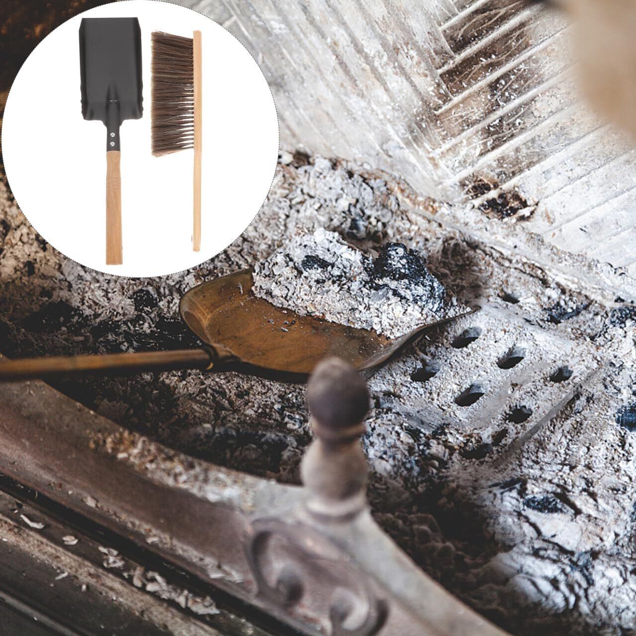 Ciieeo 灰 シャベル と ブラシ セット - 暖炉 ツール セット ファイヤーピット 石炭 シャベル と ブラシ 暖炉 掃除 ブラシ 暖炉 ファイヤーピット ツール 金属 ブラシ パン セット お家 掃除 | BASE SHOP