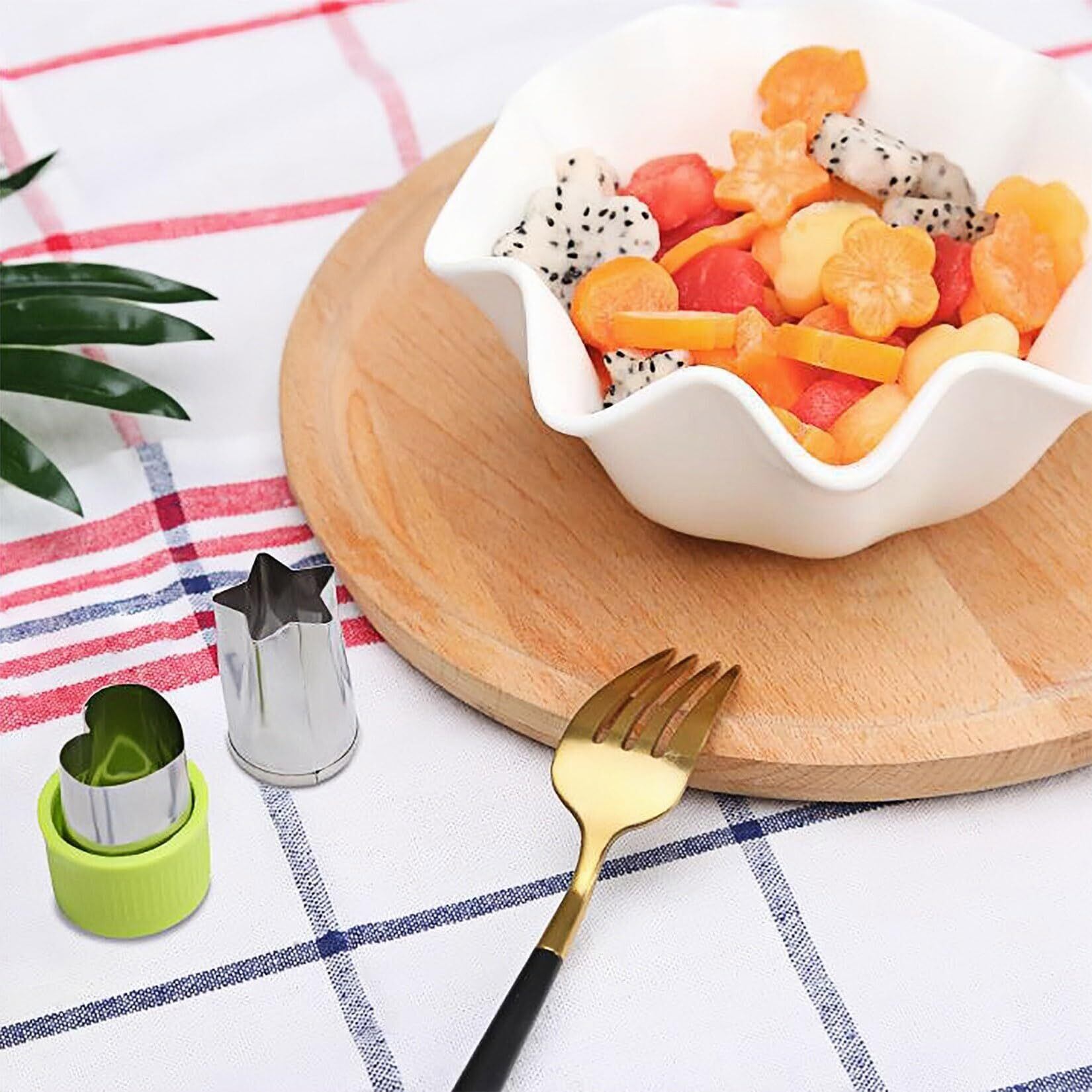 【多様なデザイン】ユニークな型抜きがセットになっており、お好みの形で野菜やフルーツをデコレーションできます。