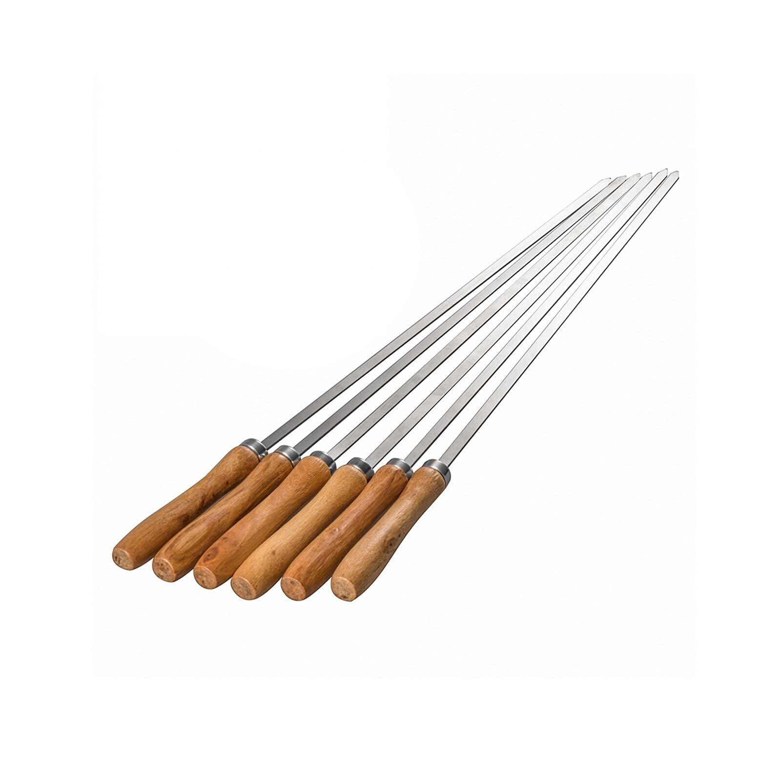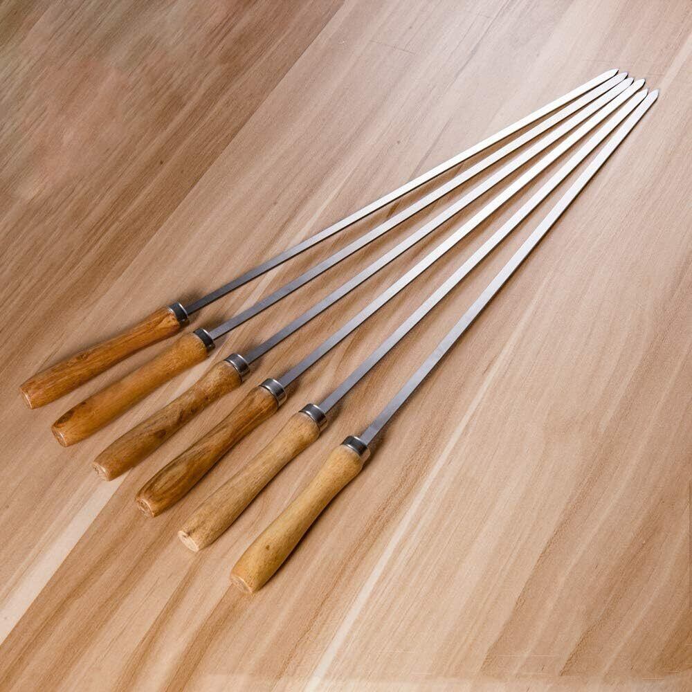 IMEEA バーベキュー串 bbq 串 キャンプ ステンレス 焼き串 スキュアー 鉄串 アウトドア 木柄 42cm 6本セット