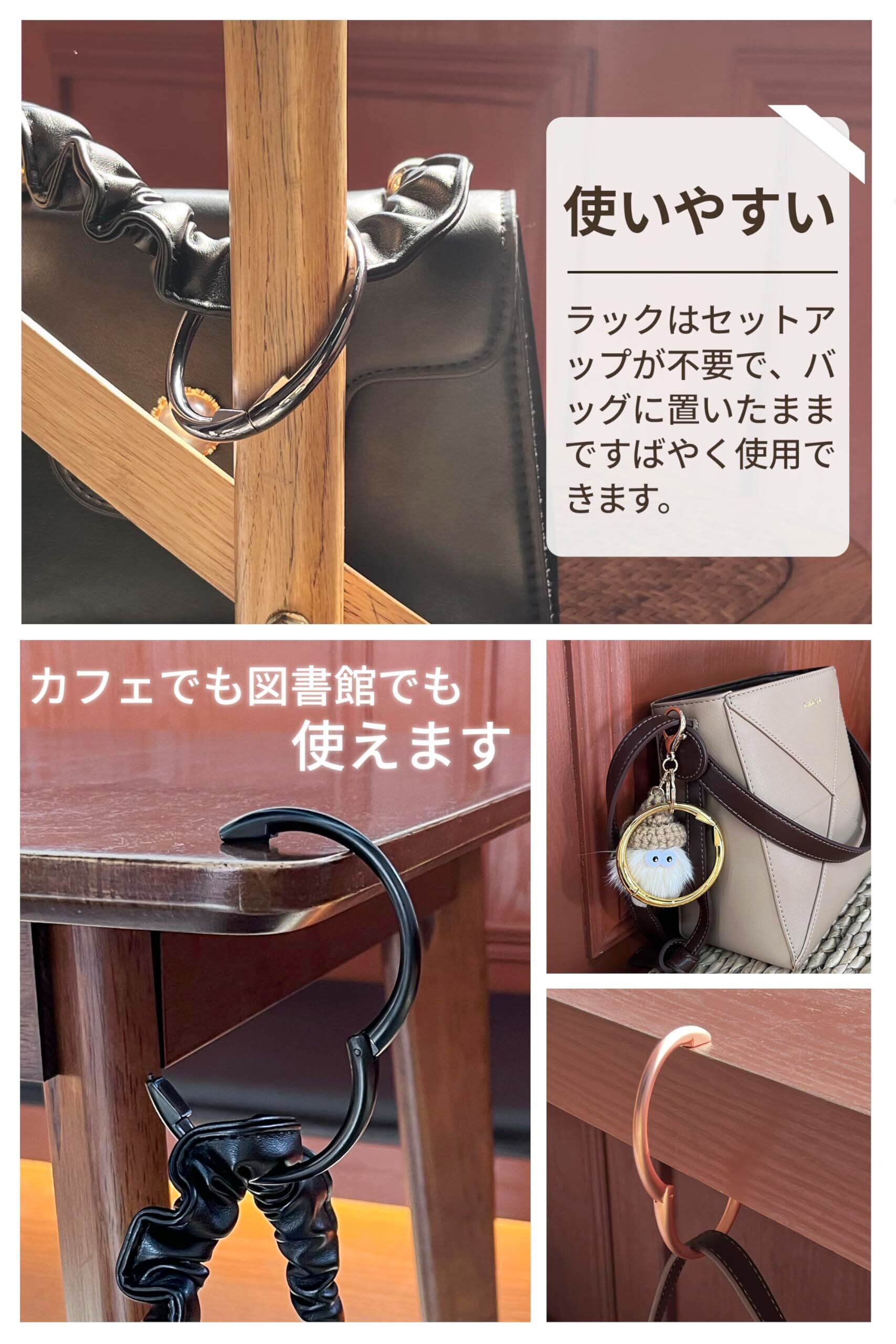 【様々なシーンで活躍・スペースを節約】旅行でも、通学・通勤でも、フックがなくて置く場所に困る人におすすめします。このフックがあれば、バッグが汚れを防ぐだけでなく、バッグを置くスペースも節約できます