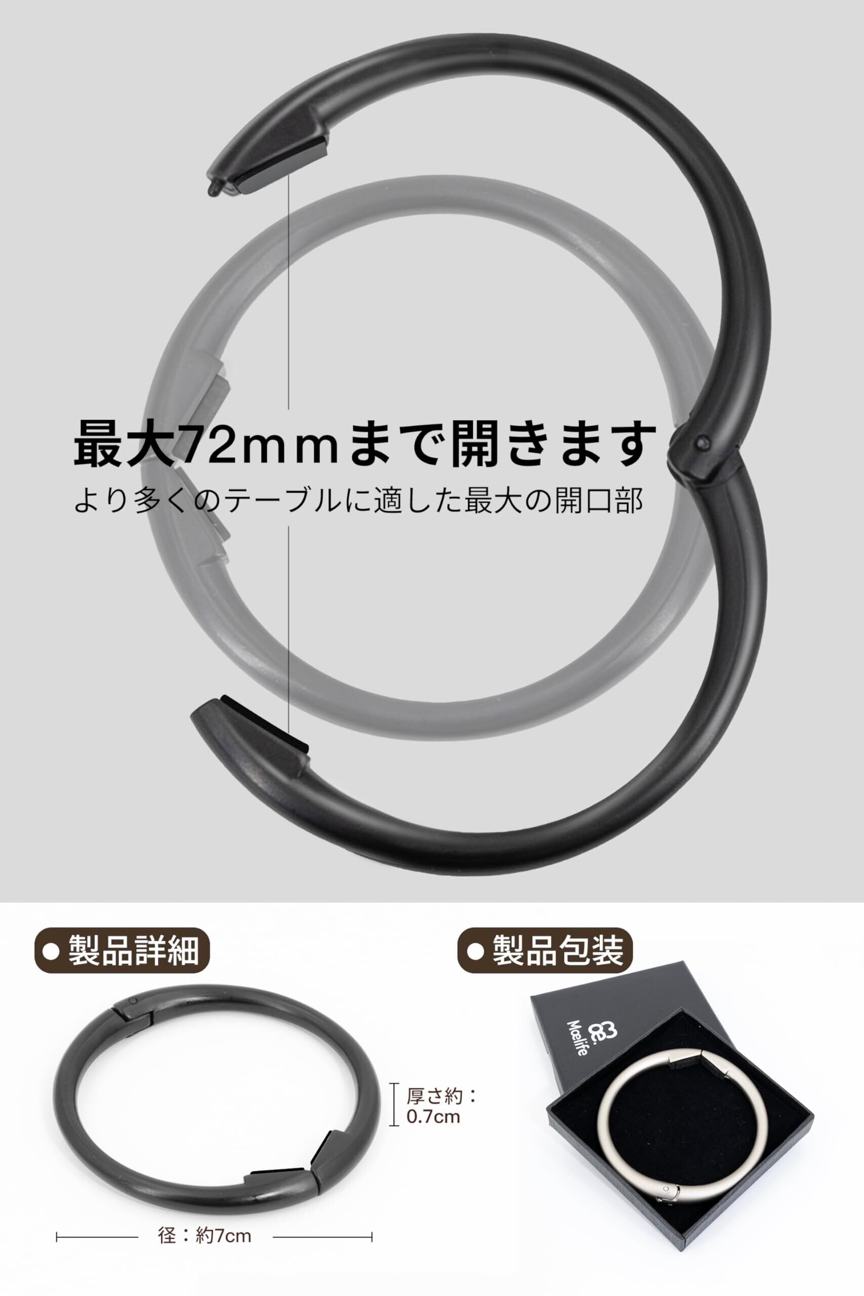 【開口部幅72mm・携帯しやすい】サイズ:7cm*7cm*0.5cm。旅行、出張、ジムに行った時、スーツケースの中に入れて省スペースです。フックの開口部は72mmなので、様々なシーンに対応できます。どこでも、いつでも、ご利用いただけます