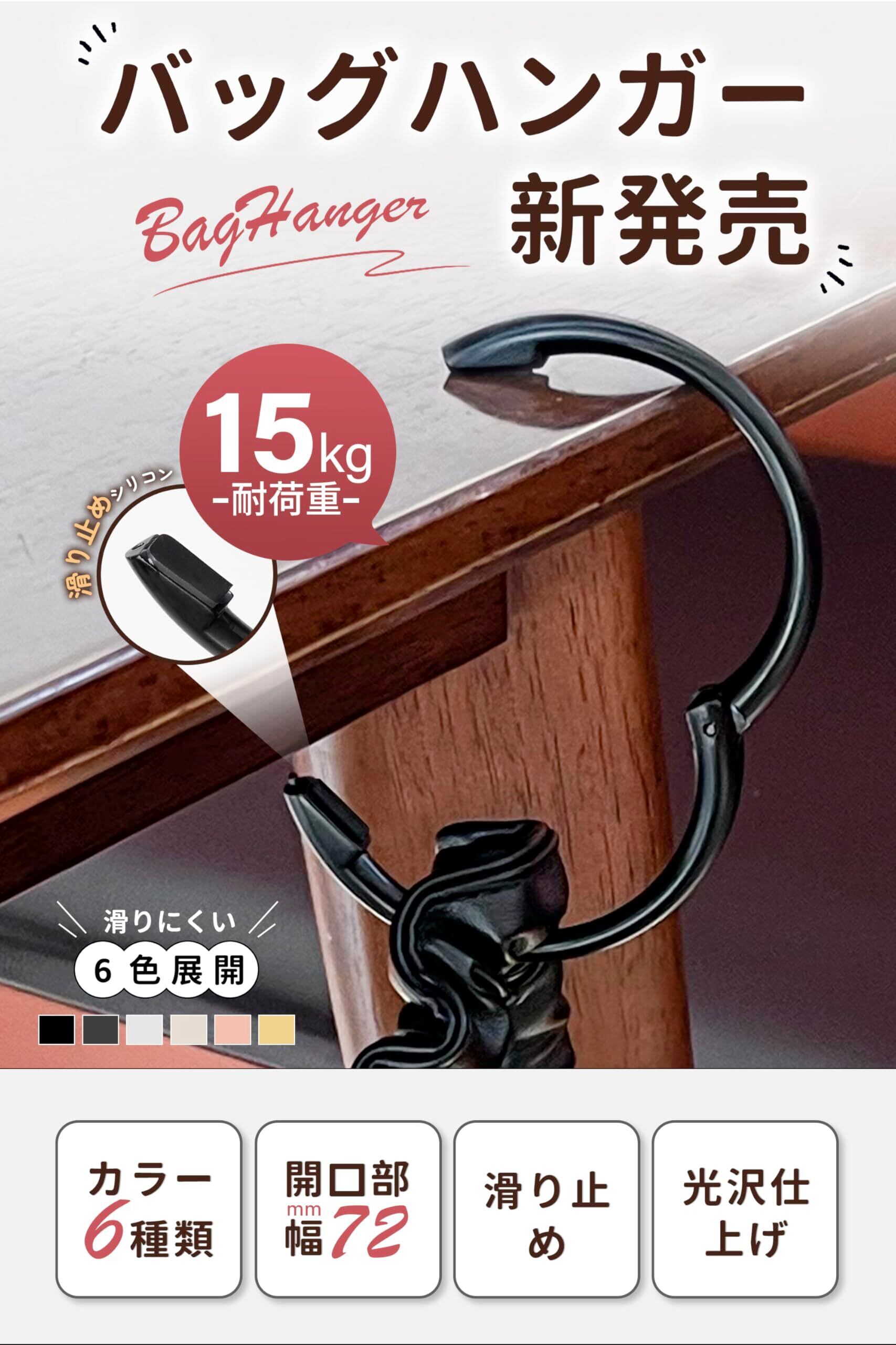 【6カラー展開・開口部幅72mm・安定感UP】 フック バッグハンガー 壁 傷つけない カバン テーブルフック バッグ ハンガー 机 デスク 強力 カバン掛け リュック 鞄掛け (ブラック(つやなし)) | BASE SHOP
