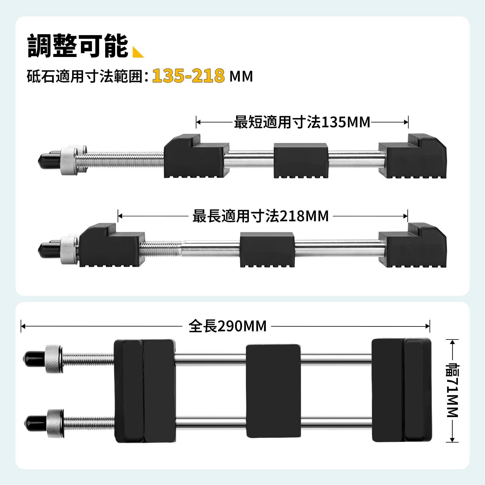 【伸縮可能砥石ホルダー】本砥石固定台は伸縮式で、135-218CMの砥石に適用です。つまり、弊社の砥石だけじゃなく、他社の違うサイズの砥石にも使用可能ので、幾つ砥石を持つ方々にはとても便利です。