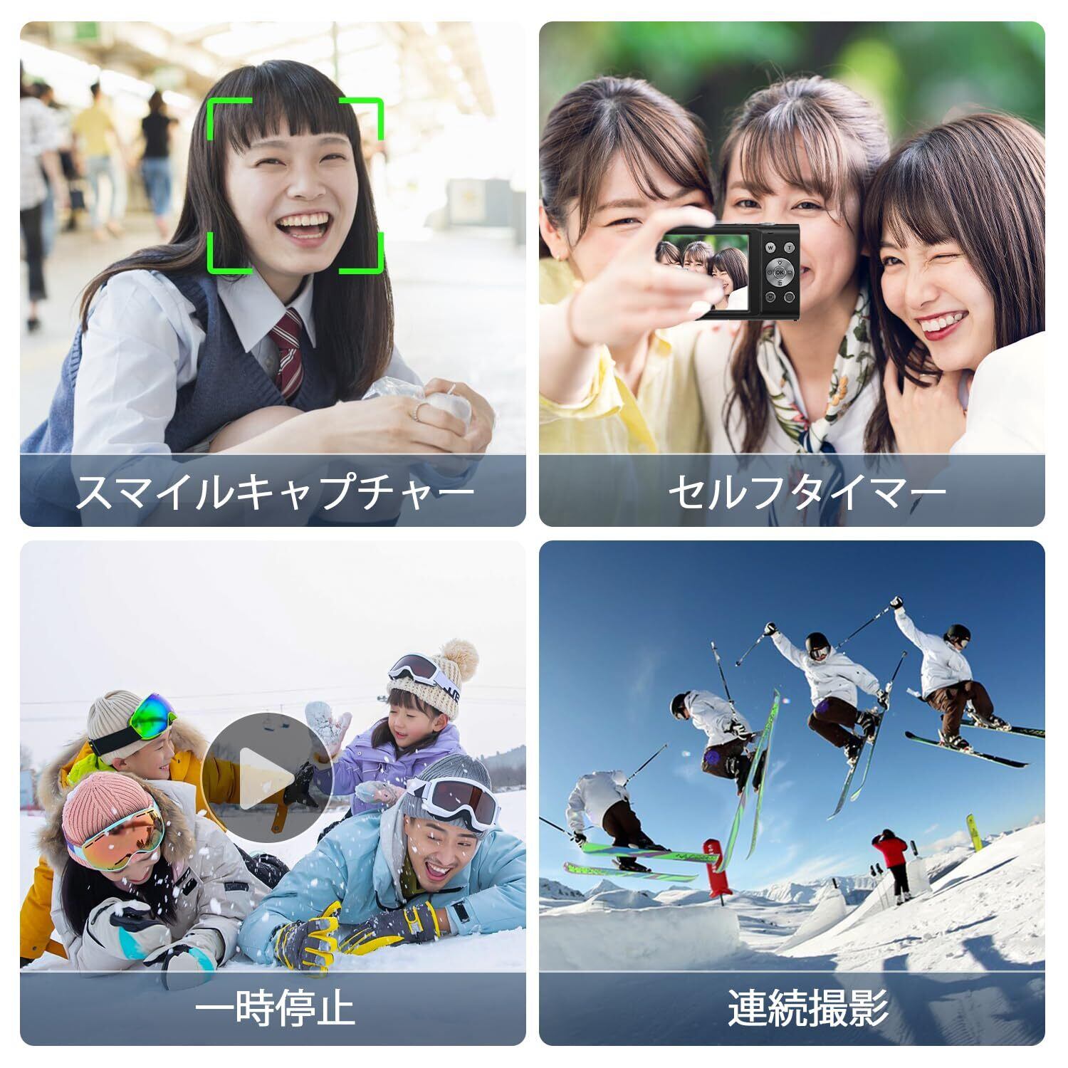 【多機能のデジカメ】ウェブカメラ、顔検出、スマイルキャプチャー、連続撮影、自撮り、ビューティファンクション、ワイトバランス、自動オフ、日付/時間表示などが設定でき、豊富な機能が持っているデジカメです。