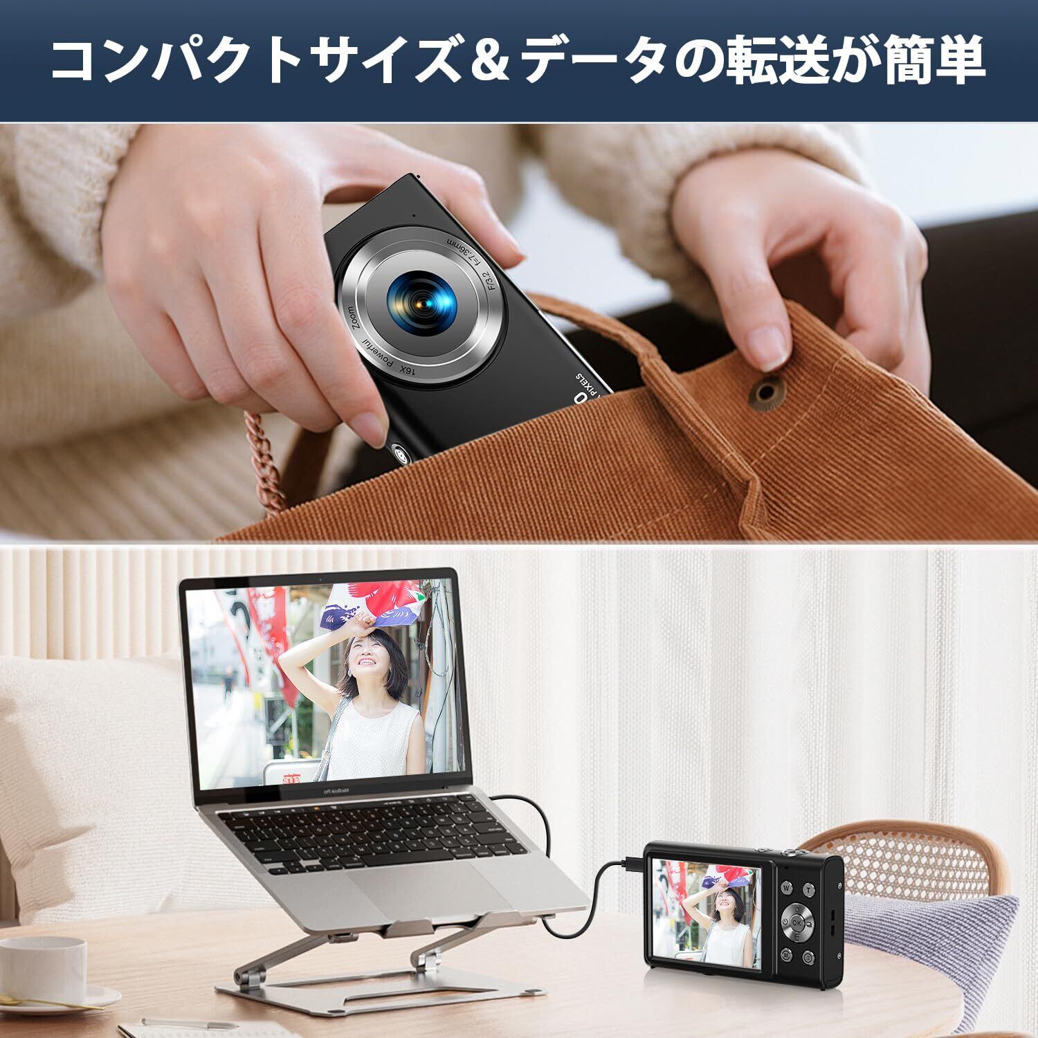 STUOGYUM デジタルカメラ 4K オートフォーカス デジカメ 4800万画素 700mAhバッテリー2個搭載 16倍ズーム ウェブカメラ 手ぶれ補正 顔検出 スマイルキャプチャー 連続撮影 自撮り 2.88インチIPSスクリーン 軽量 小型 | BASE SHOP