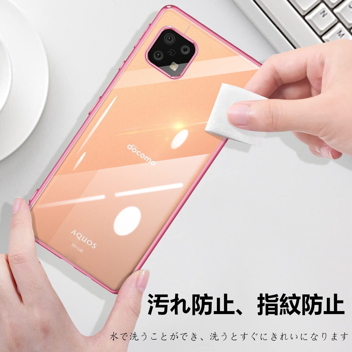 AQUOS Sense6 ケース クリア SHG05 SH-54B カバー SH-M19 透明 スマホケース 全面保護 耐衝撃 軽量 メッキ加工 TPU 薄型 ストラップホール付き 軽薄 耐久 携帯便利 全面保護 黄変防止(ローズゴールド) | BASE SHOP