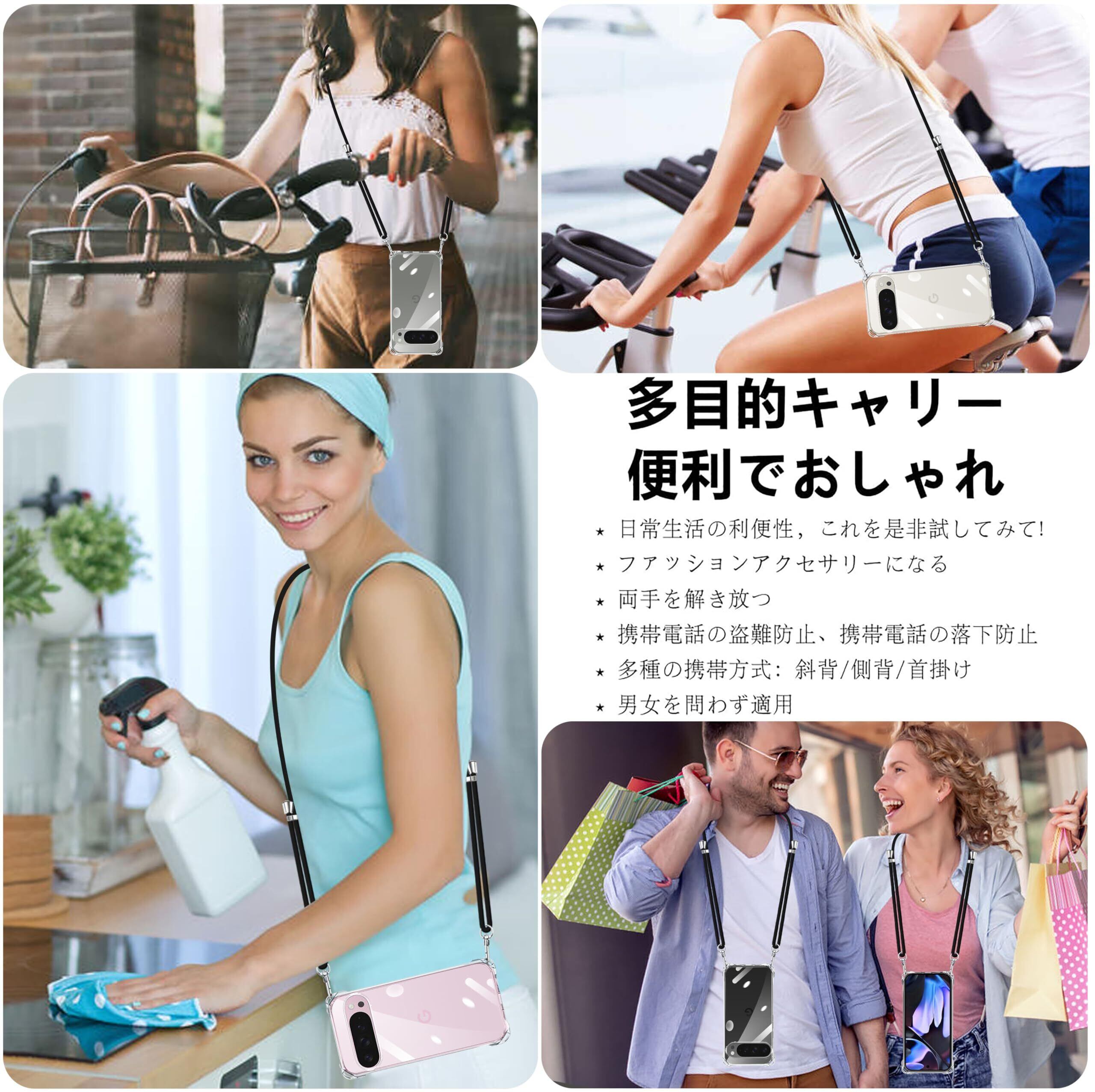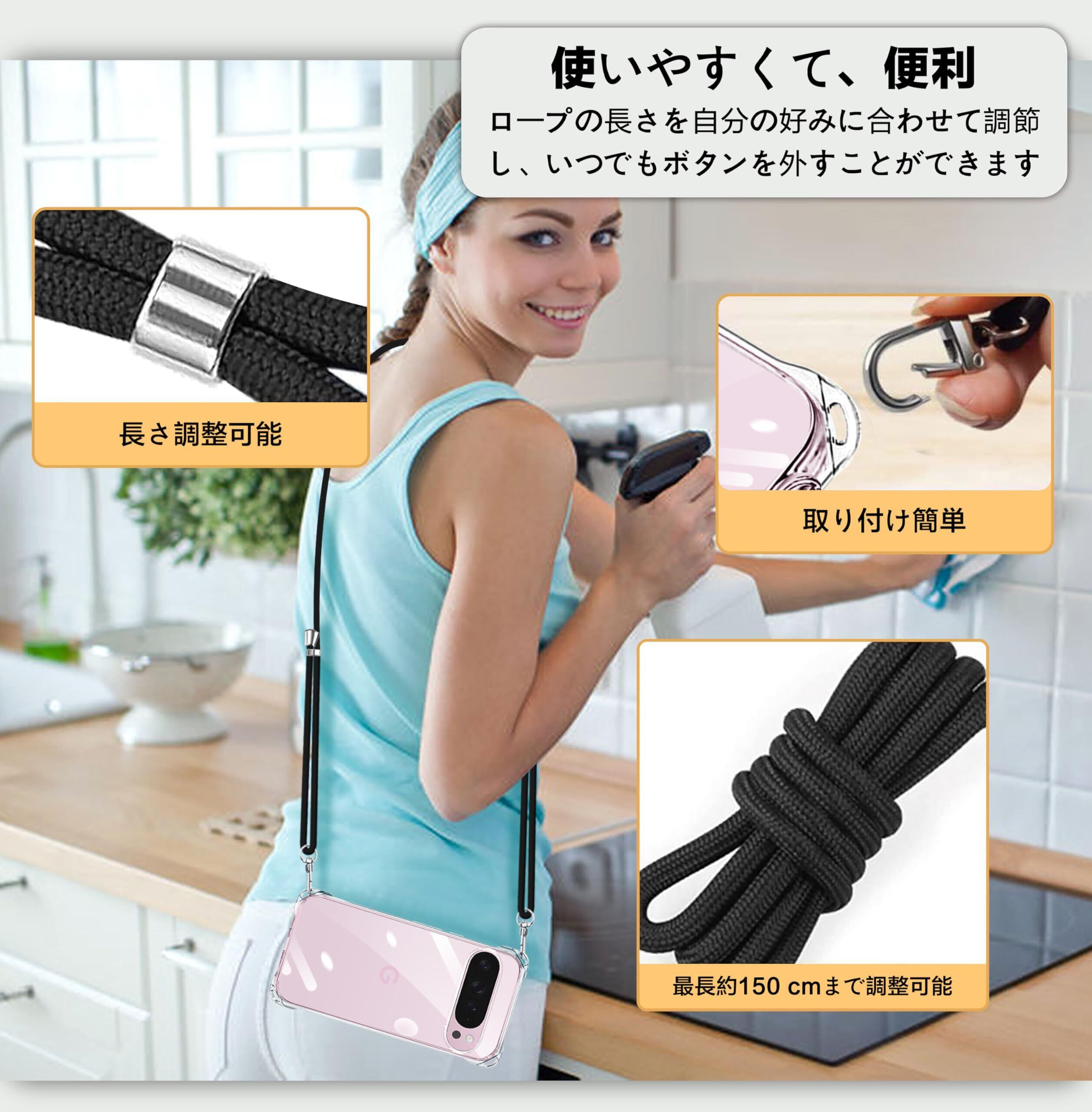 Google Pixel 9 Pro XL ケース クリア ショルダー ピクセル 9Pro XL 携帯カバー 耐衝撃 全面保護 スマホケース ストラップ付き 肩掛け 斜めかけ 縄掛けケース 縄掛け スマホケース TPU 薄型 軽量 取り外し可能 落下防止 柔軟【クリア】 | BASE SHOP