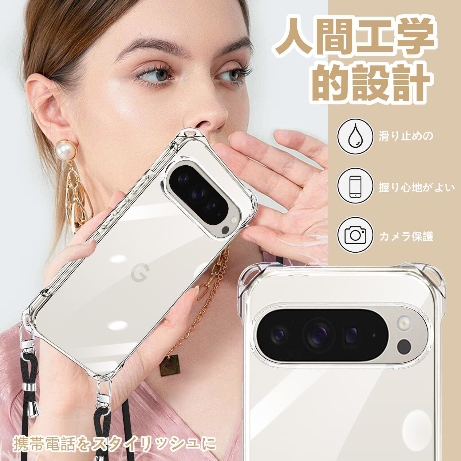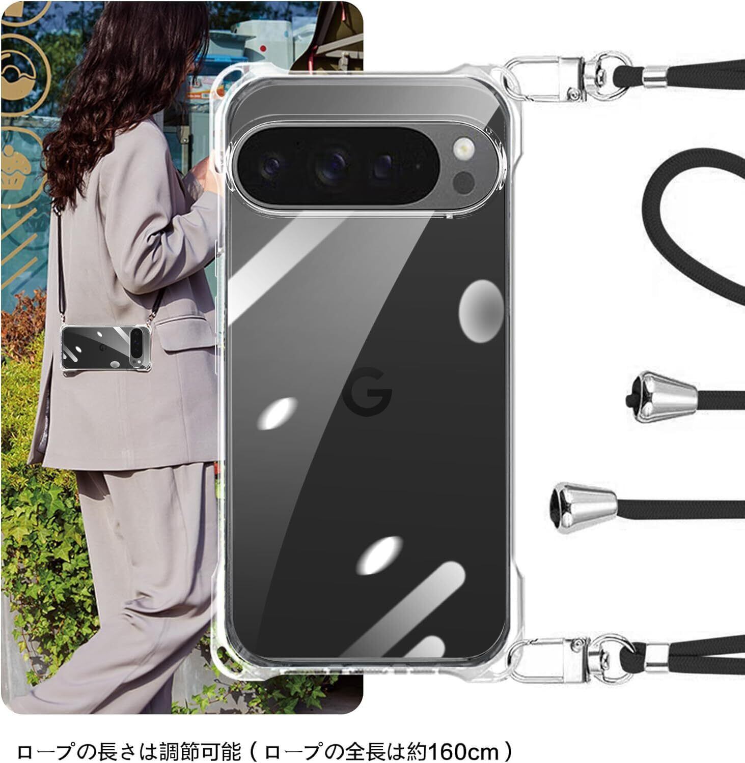 Google Pixel 9 Pro XL ケース クリア ショルダー ピクセル 9Pro XL 携帯カバー 耐衝撃 全面保護 スマホケース ストラップ付き 肩掛け 斜めかけ 縄掛けケース 縄掛け スマホケース TPU 薄型 軽量 取り外し可能 落下防止 柔軟【クリア】