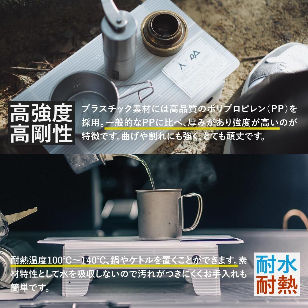 【軽量・コンパクト】 金属製のテーブルではなしえない驚異の75g→2025年4月、70gにアップグレード!さらに軽くなりました!最大の利点はその軽さにあります。折りたたむことでサッと収納、とても軽いので荷物の重量負担がありません バッグパックに忍ばせて…キャンプだけでなく、登山、ハイキング、トレッキング、海やレジャーにと、すべてのアクティビティへと連れだせる相棒となること間違いなしです!