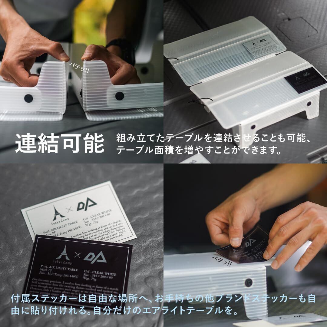 【自由にカスタム可能】 使用者に自由にカスタムしてもらいたいという想いからブランドロゴをあえてプリントしていません。(ブランドステッカー同梱)付属のステッカーを好きな場所に貼ってもらい、お手持ちの他ブランドステッカーも自由に貼って自分だけのエアライトテーブルを完成させてください!