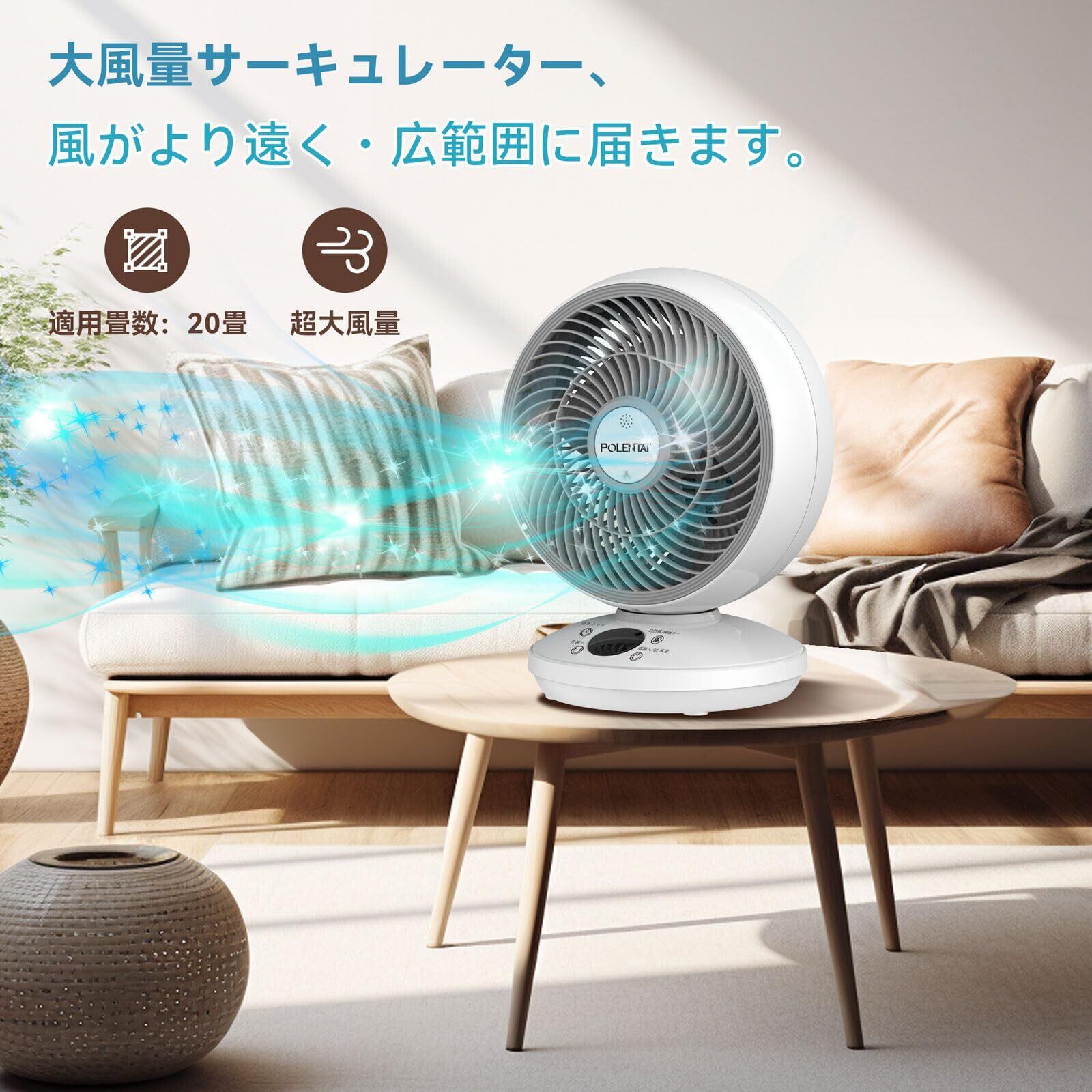 POLENTAT サーキュレーター 扇風機 静音 20畳 左右首振り リモコン付き 壁掛け パワフル送風 3段階風量 12時間タイマー 液晶ディスプレイ お手入れ簡単 空気循環 冷暖房換気 部屋干し 空気清浄 脱臭 コンパクト 省エネ 節電対策 | BASE SHOP