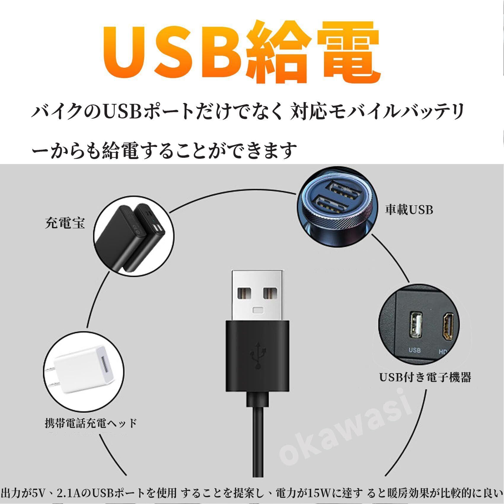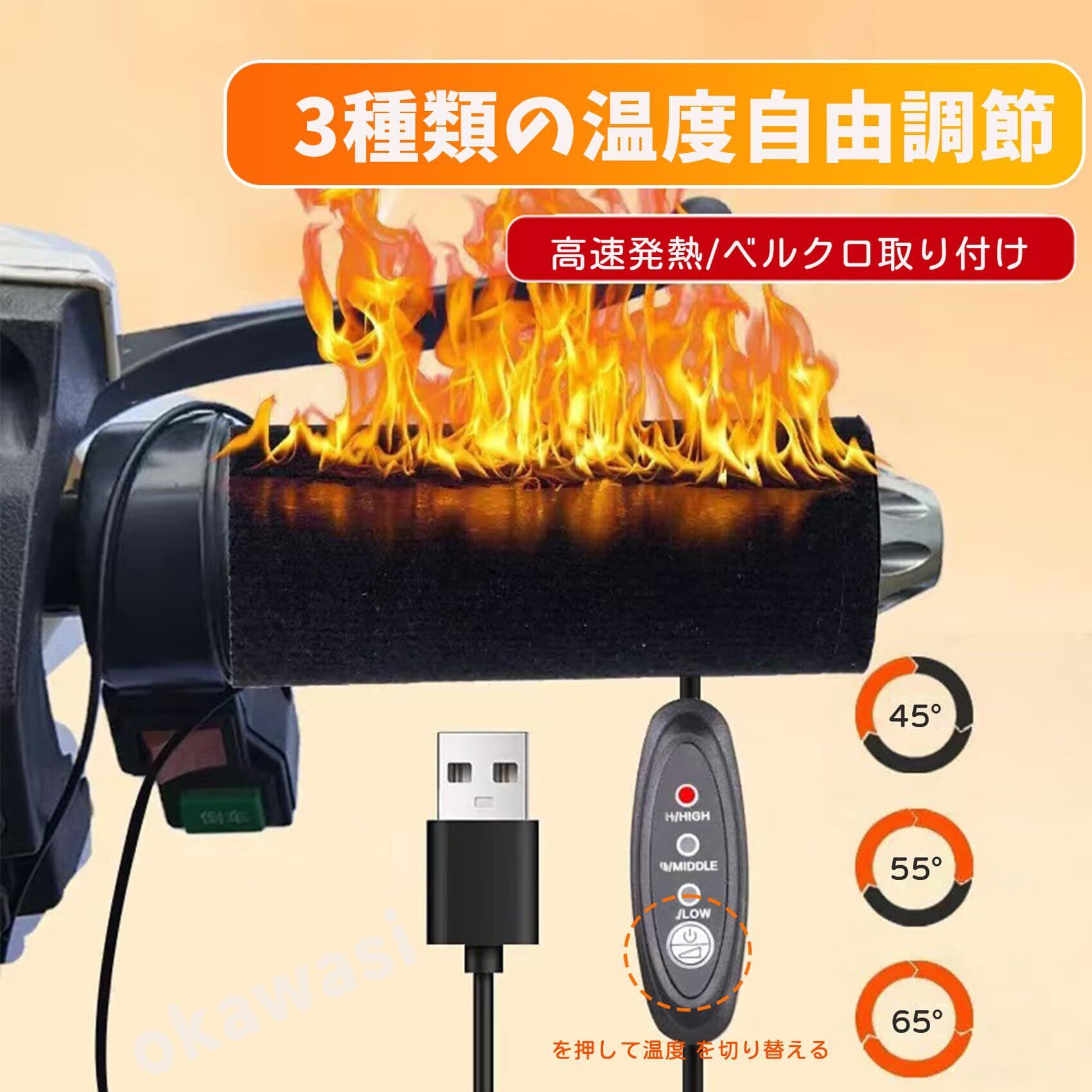 OKAWASI グリップヒーター バイク用 ハンドルヒーター 巻き付け式 USB 3段階温度調整 10秒即暖 脱着簡単 強力防水 ワンボタン温度制御 取り付け簡単