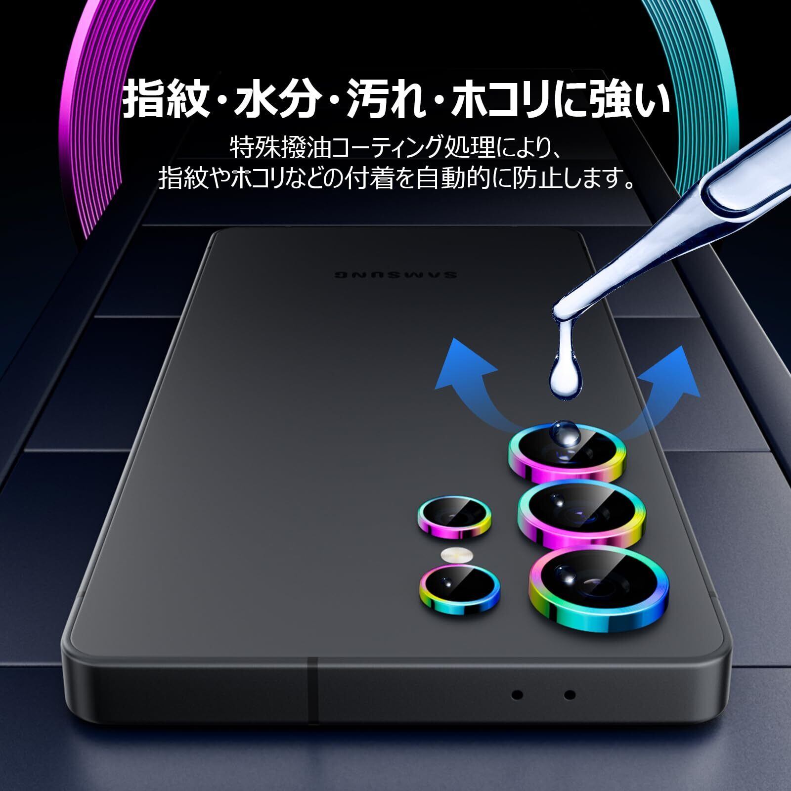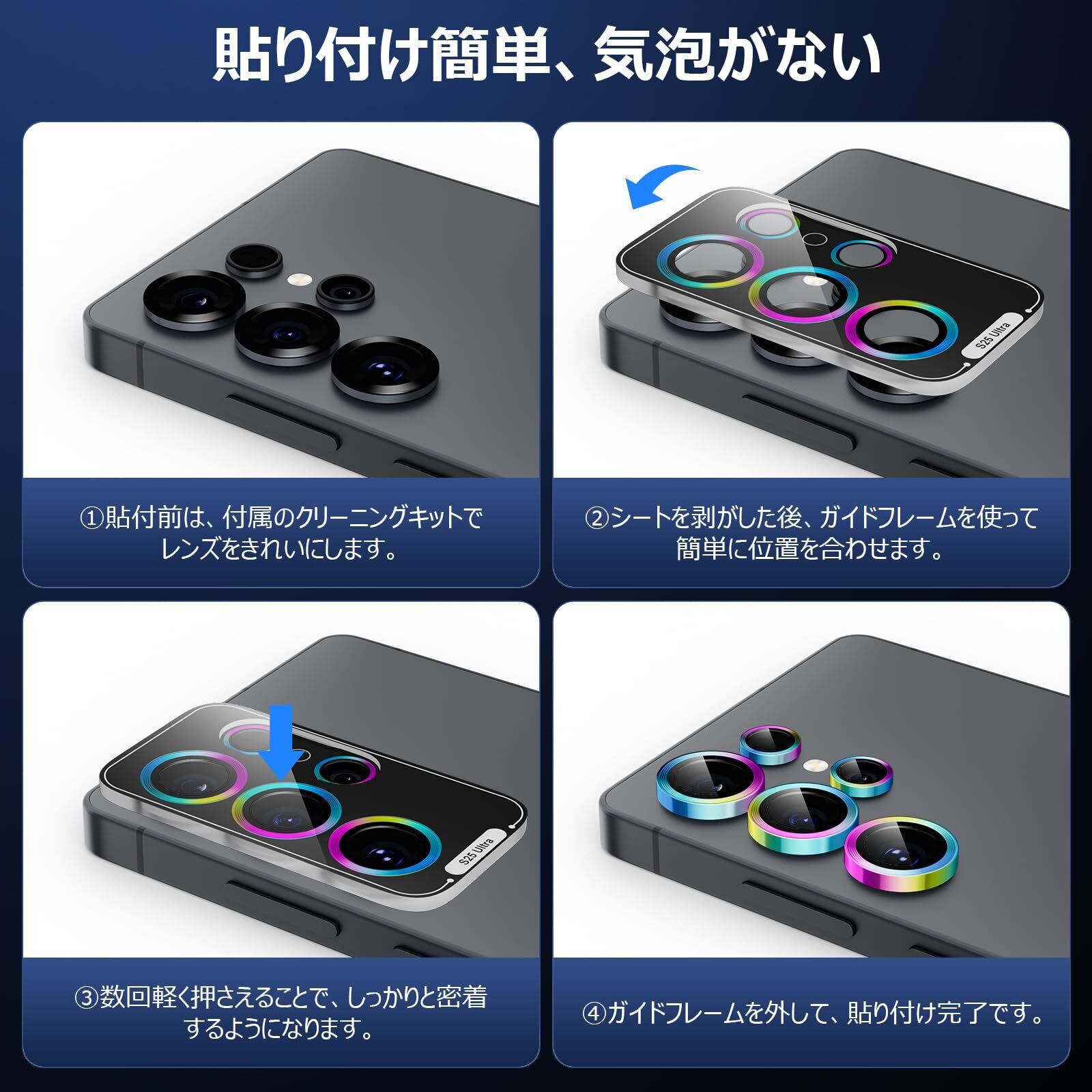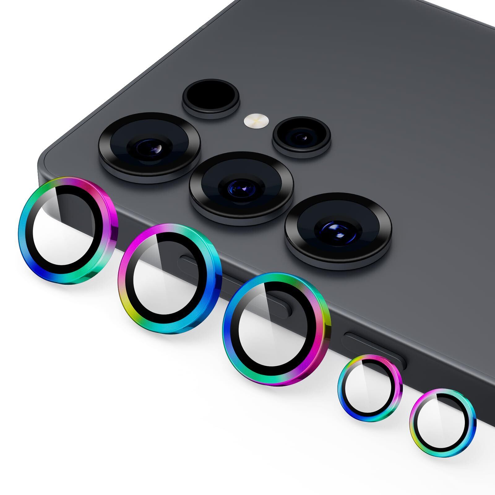 Podick レンズカバー Galaxy S25 Ultra用 カメラフィルム 9H強化ガラス アルミ合金 高透過率 ギャラクシー S25 Ultra カメラ保護 キズ防止 耐衝撃 黒縁取り 露出オーバー防止 飛散防止 気泡ゼロ 極薄 カメラカバー プロテクター (カラフル)
