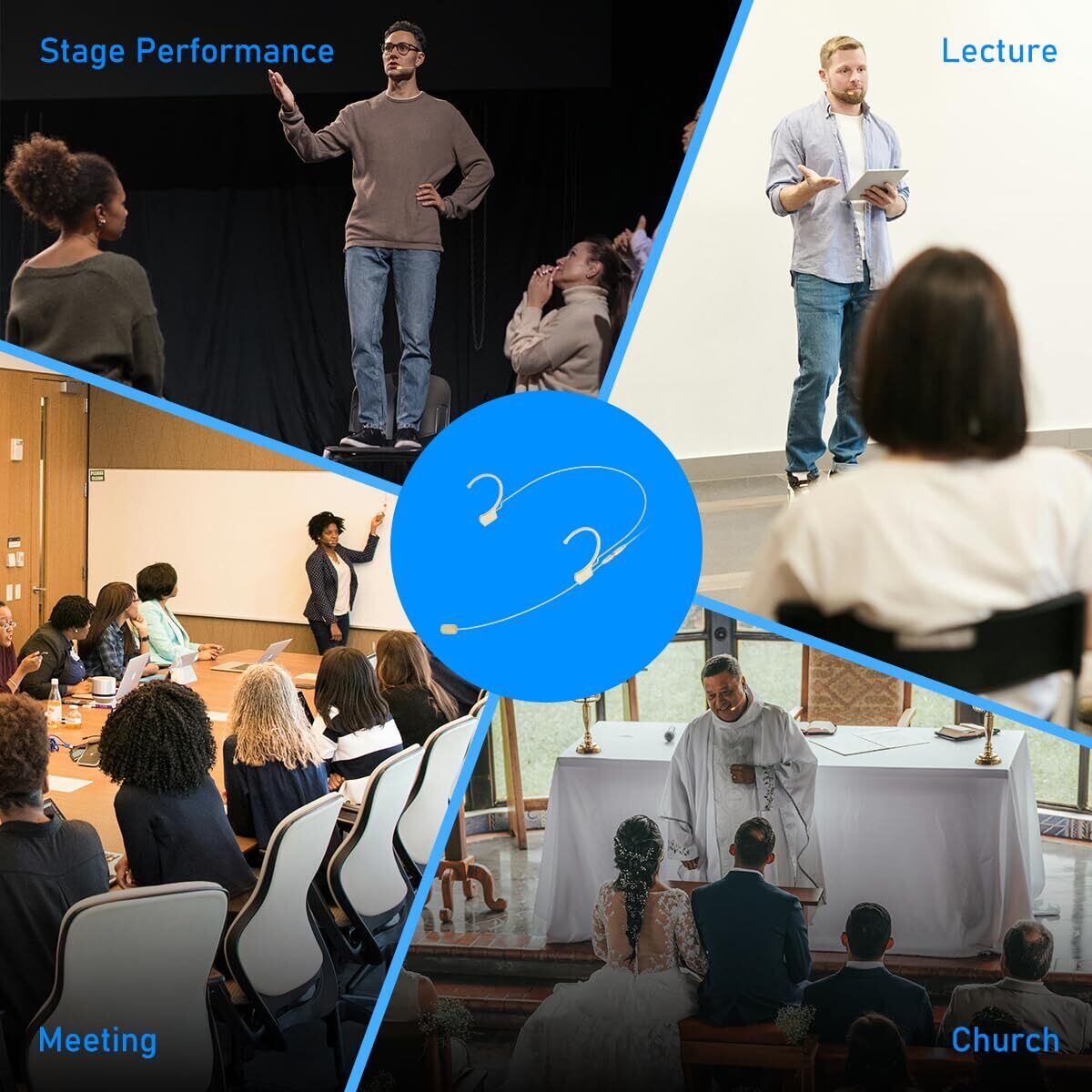 幅広い用途: ステージパフォーマー、教会、プレゼンター、放送局、講師、ミュージシャン、俳優、歌手など、マイクの視認性が最小限で、快適性が最大限に高まり、ハンズフリー操作が求められるあらゆる用途向けに設計されています。