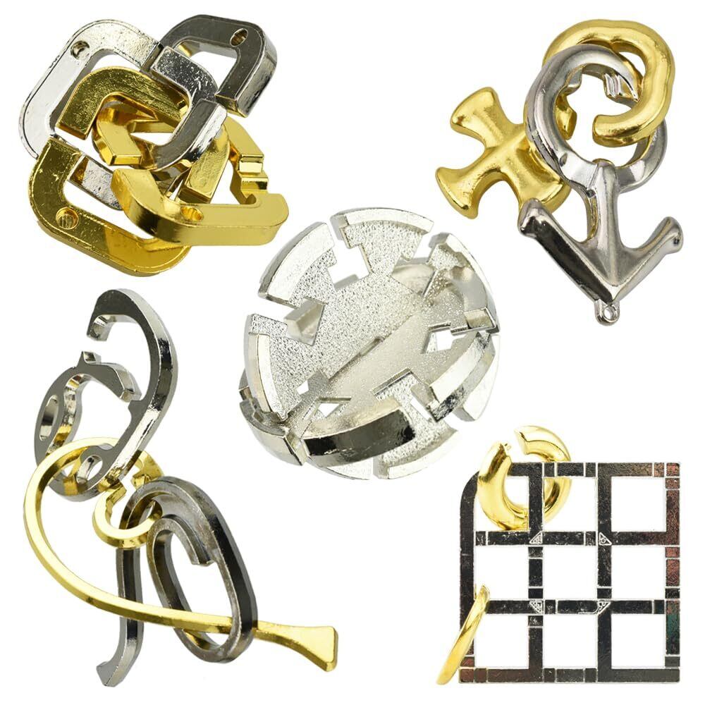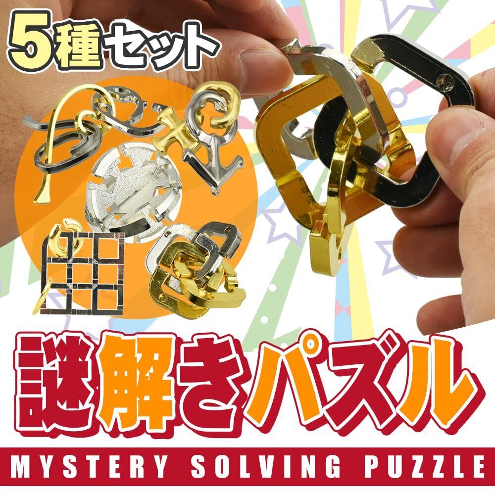 3Dパズル パズルリング 5個セット 重厚感 頑丈 滑らか 謎解き 持ち運び 老若男女 暇つぶし 手遊び 隙間時間