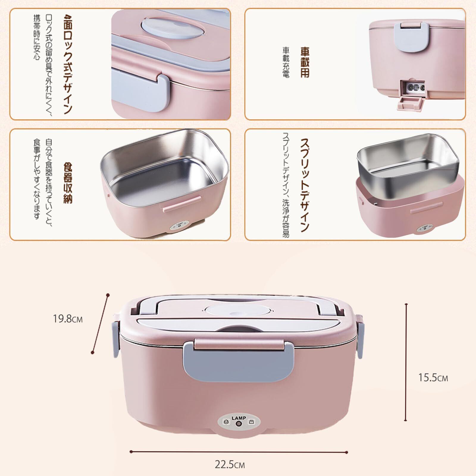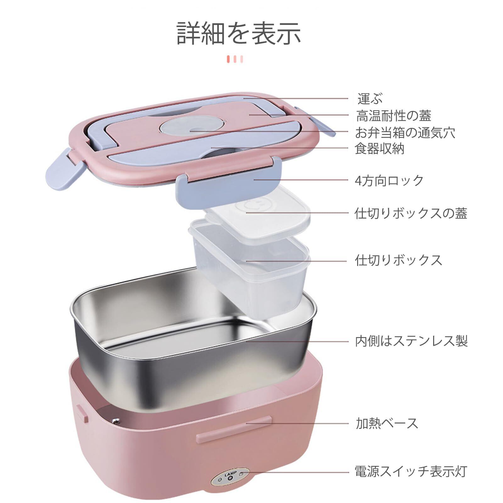 加熱弁当箱 弁当箱炊飯器 電気弁当箱 ステンレス 弁当箱 电热饭盒 バイク 弁当 温め 1.5L大容量 静音 速く加熱する漏れ防止 カトラリー付き 車用 家庭用 定温 70℃ 水必要なし (白) | BASE SHOP