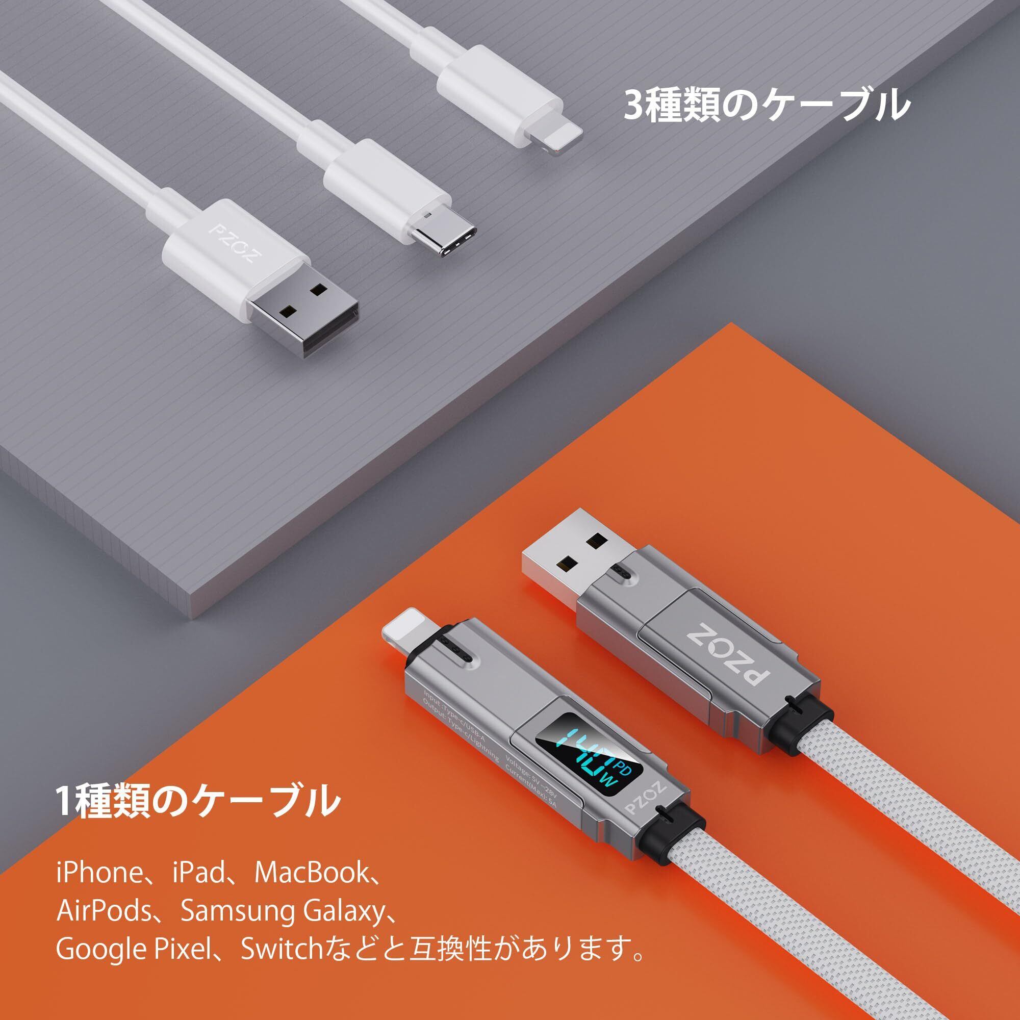 PZOZ 充電ケーブル 4in1 LEDディスプレイ 最大対応140W ケーブル USB C to USB C/タイプc to ライトニング/USB A to USB C/USB A to Lightning 5A 急速充電 PD Macbook/iPhone/iPad/Samsung Galaxy/Google Pixel/Switch 対応