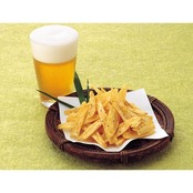 ごぼうを薄くスライスした、ほんのりガーリック風味のチップスです。下処理の手間がなく、揚げ色もきれいです。