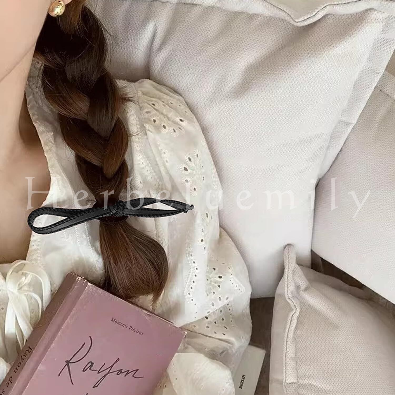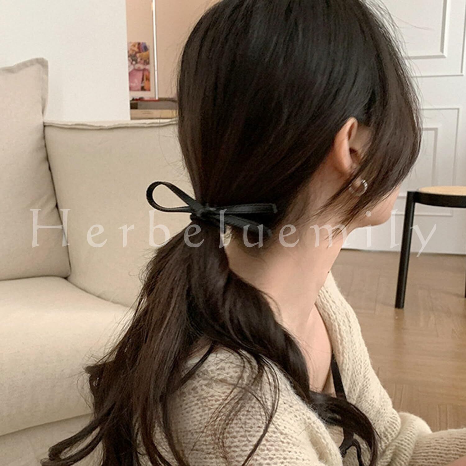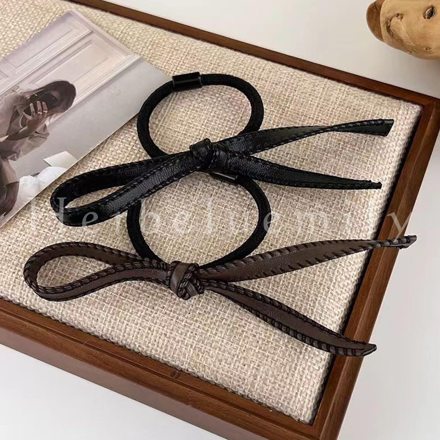 [Herbeluemily] ヘアゴム リボン PUレザー 2本セット 黒 飾り付きヘアゴム ヘアアクセ 髪飾り おしゃれ 大人 黒 茶 ミックス2本セット HM-0020-R04-BKBN | BASE SHOP
