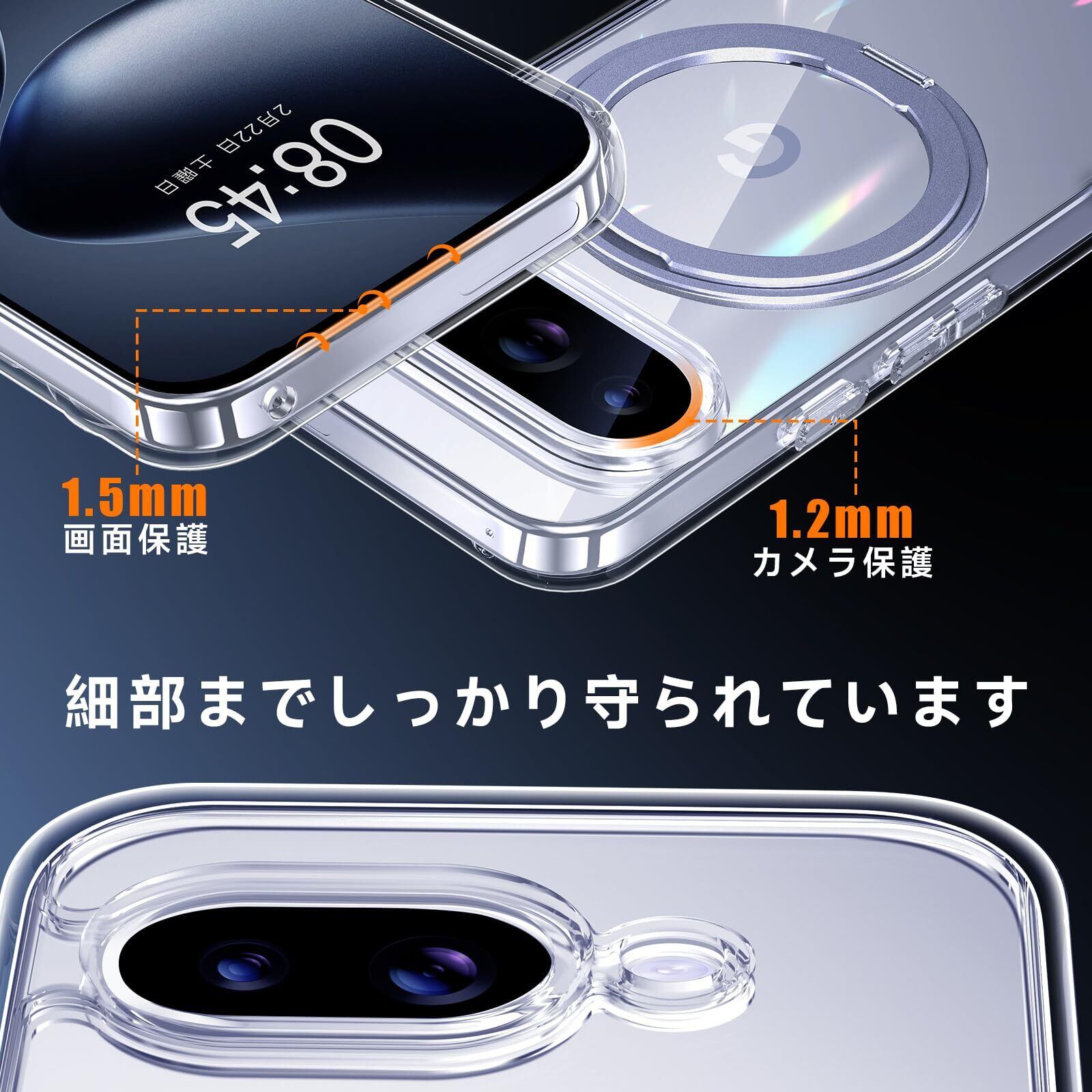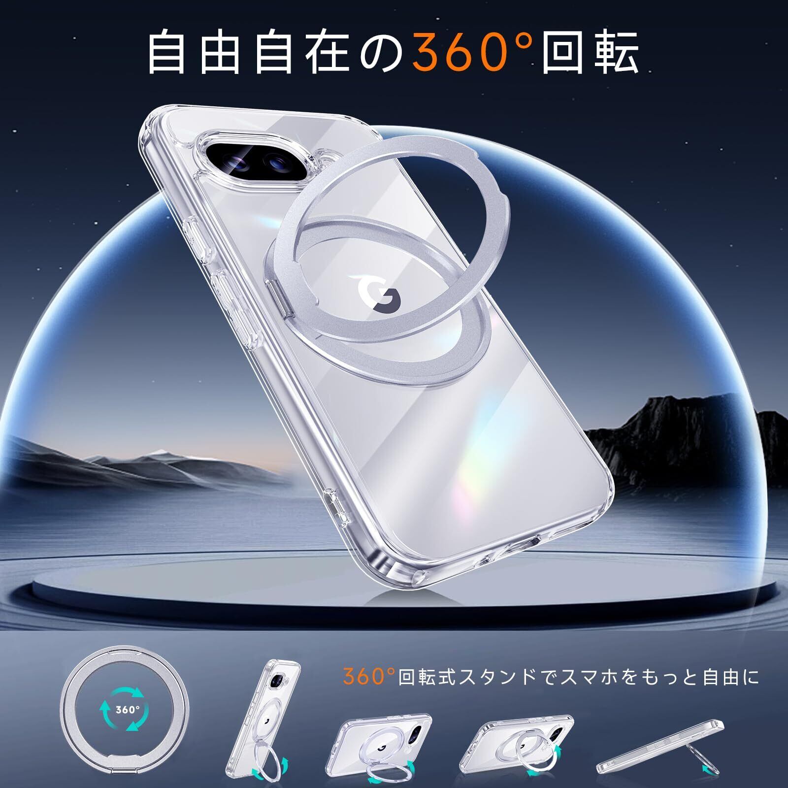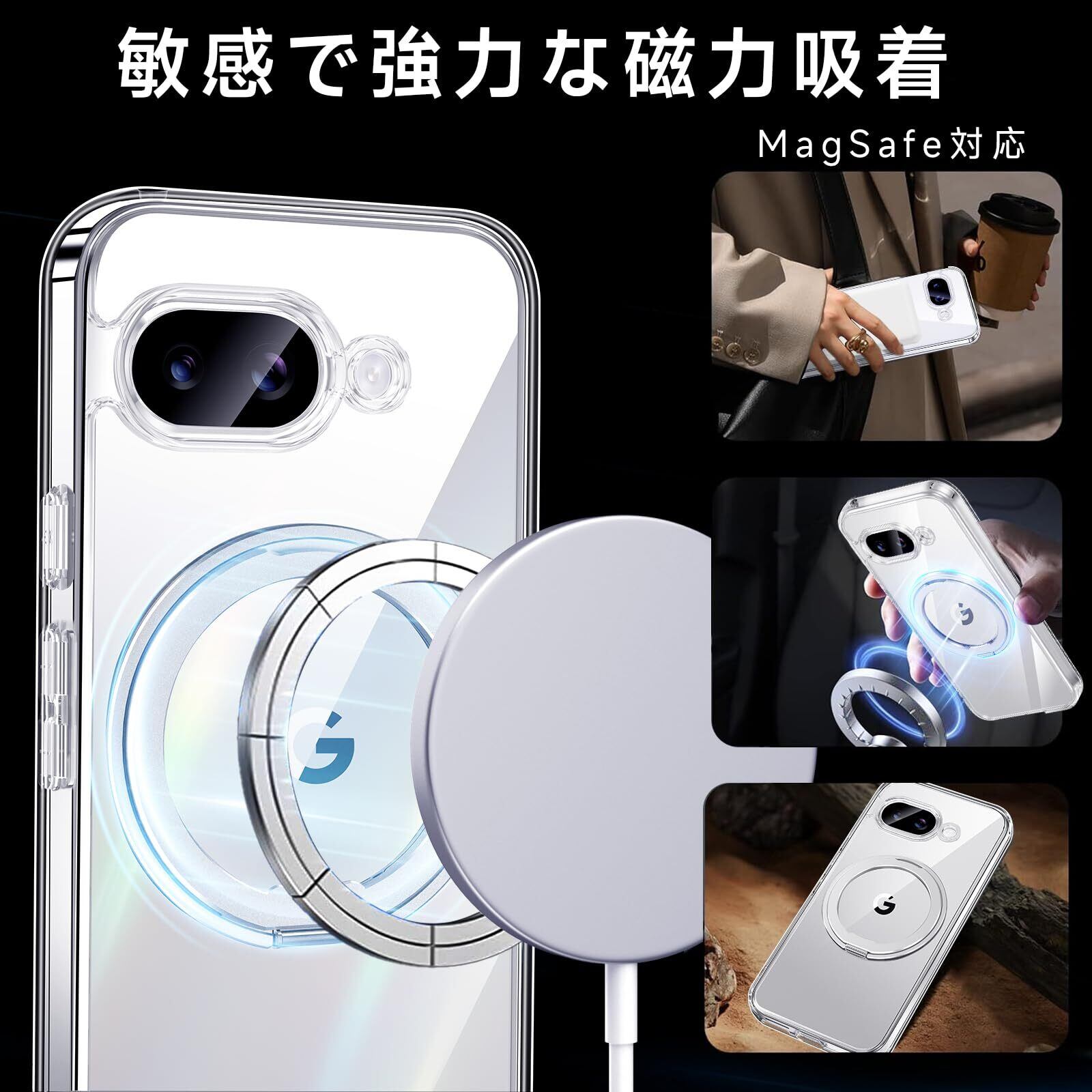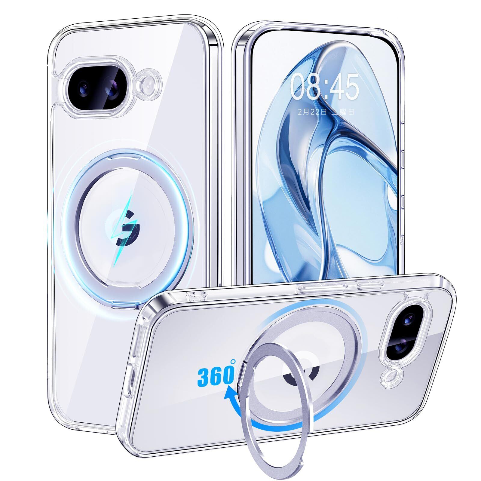 【米軍MIL規格・Magsafe対応】Google Pixel 9a 用 ケース MagSafe対応 リング 360°回転スタンド機能 縦横両対応 透明 黄ばみ防止 ワイヤレス充電 レンズ保護 耐衝撃 携帯カバー グーグルピクセル9a カバー 6.3 インチ マグネット搭載 車載ホルダー マグセーフ対応 おしゃれ (クリア) | BASE SHOP