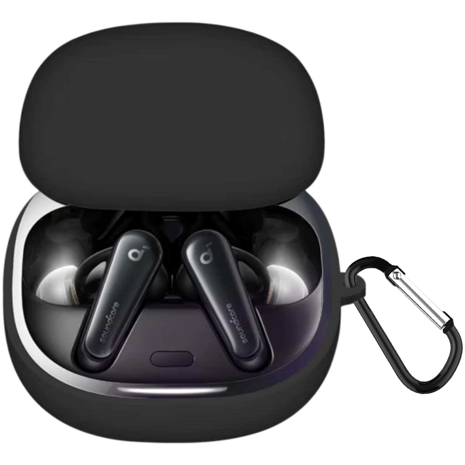 KANOYO Anker Soundcore Liberty 4 用 ケース カバー anker soundcore liberty 4シリコン ケース 保護カバー 落下防止 キズ防止 耐衝撃 軽量 装着充電可能 防水防塵 カラビナ付き(ブラック) | BASE SHOP