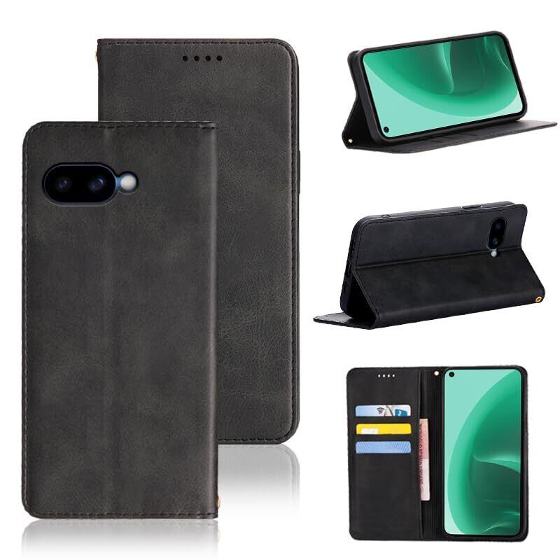 適用 Google Pixel 9A ケース 手帳型 グーグルピクセル9a 用 手帳型ケース Pixel9a 用 スマホケース カバー 手帳型 PUレザー カード収納 財布型 耐衝撃 ケース マグネット スタンド機能付き 5色(Google Pixel 9a 用 ケース手帳型) (ブラック)