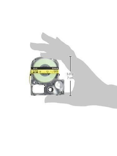 「テプラ」PROシリーズ専用テープ。12mm幅でファイルの背見出しなどに適している。黄地に黒文字で印字される。
