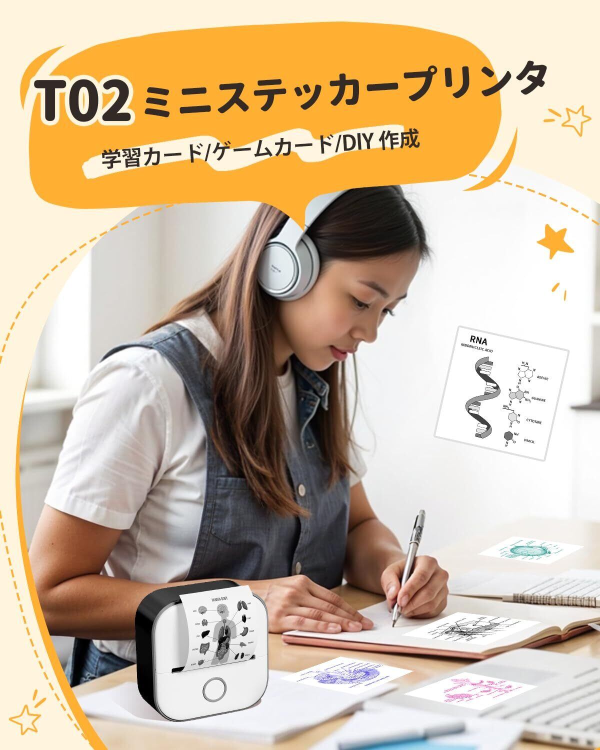 高い実用性 - T02多機能サーマルプリンタはラベルプリンター、写真、学習ノート、ステッカー、領収書、名刺などを印刷することができます。学生さんやお子様、OLさんにもお使いいただけます。また、親戚や友人のための休日の贈り物としても適です。様々な感熱紙があなたの印刷をより面白くしてくれます