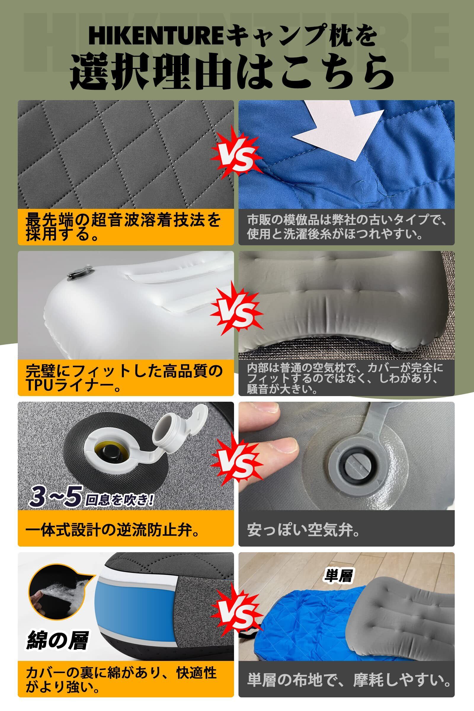 HIKENTURE キャンプ アウトドア 枕 【コットンカバー付き】 携帯枕 超軽量 エアーピロー 旅行 まくら 空気枕 腰枕 コンパクト 収納袋付き トラベル・車中泊・事務室