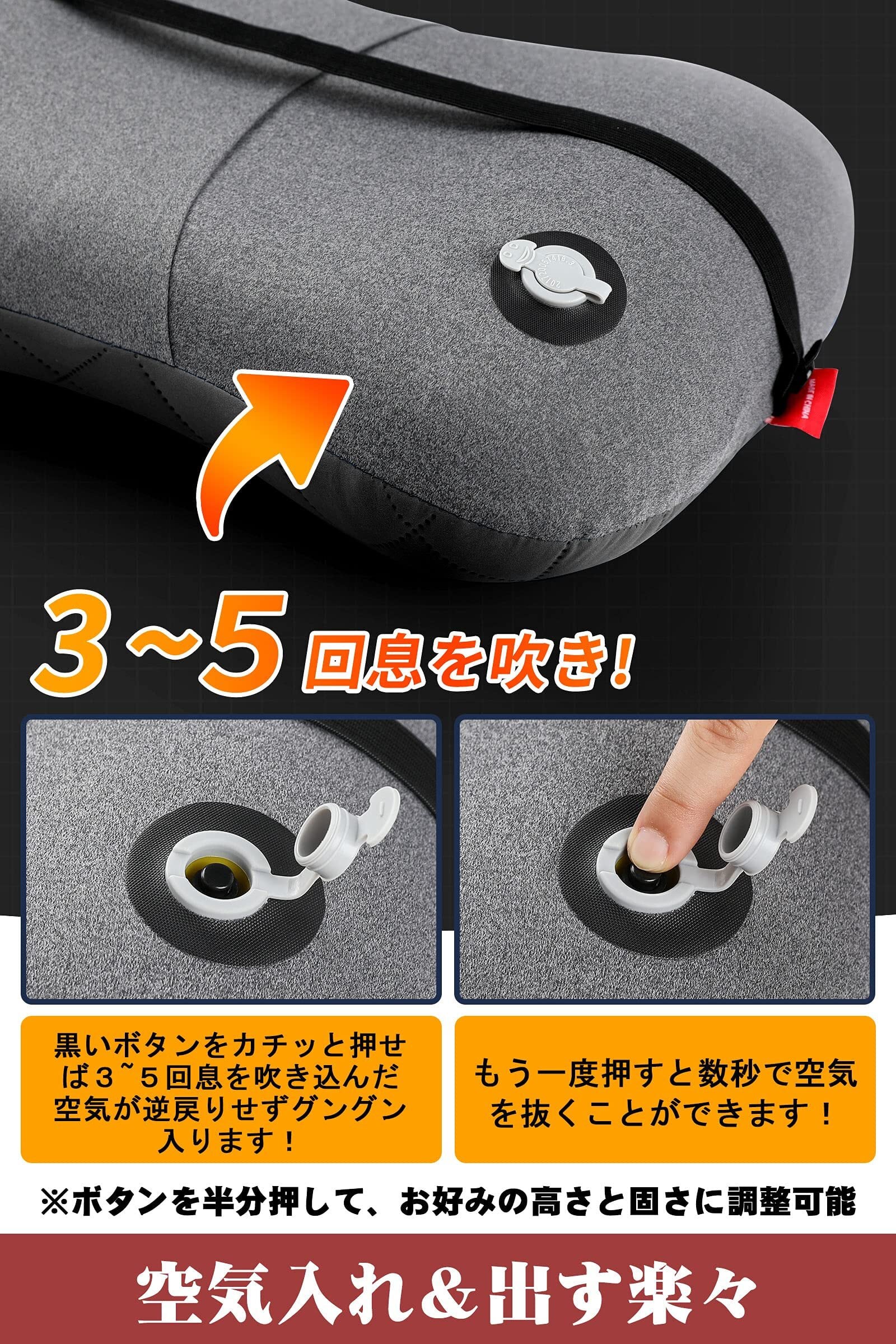 【絶妙な使用感・快適さはここから始まる!】このキャンプ 枕はコットンカバー付きで、通気性、柔らかの触感を提供します。枕カバーが汚され場合、クリーニングのために取り外すことができます。人間工学に基づいたエアー枕は、頭から首までしっかりサポートします!
