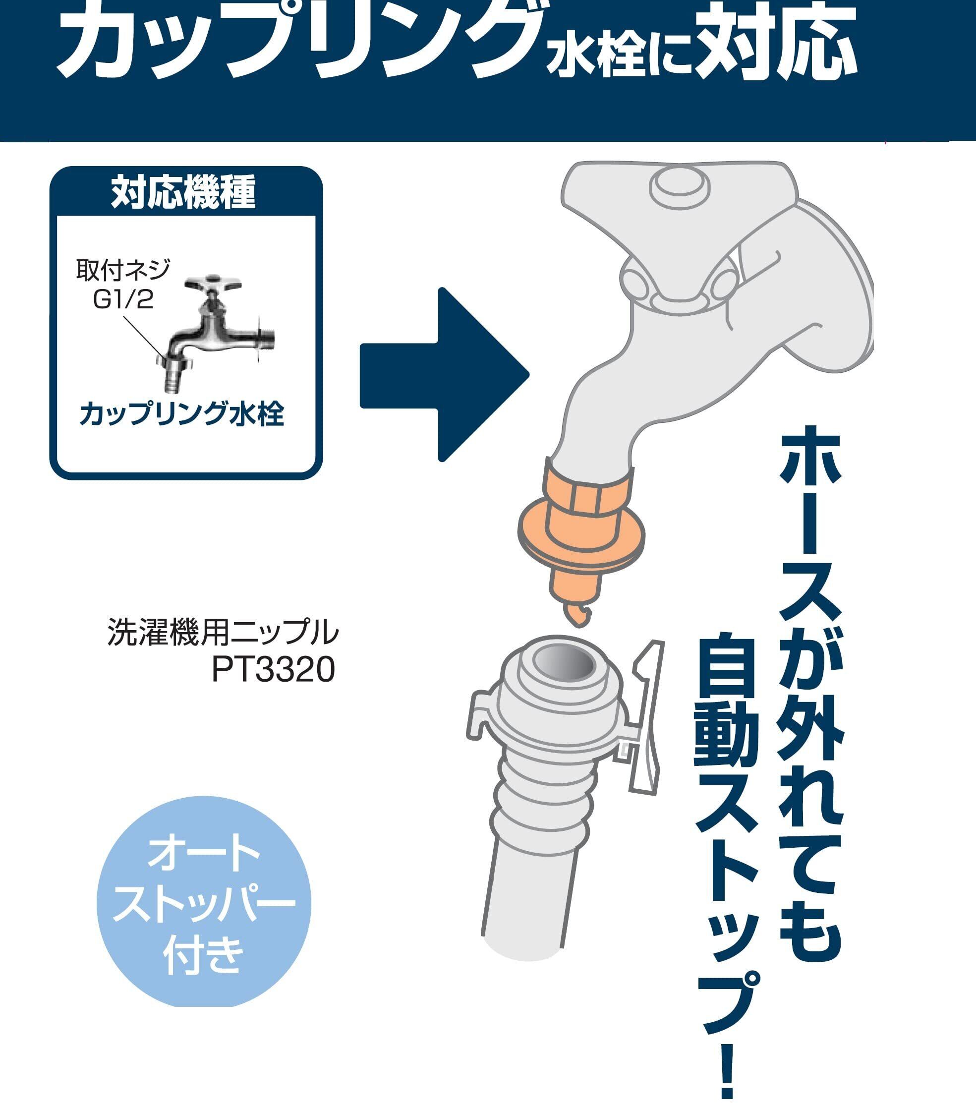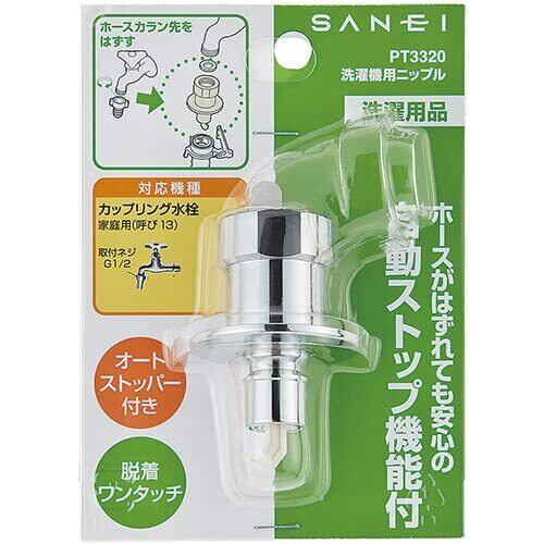 SANEI(サンエイ) 洗濯機用ニップル 自動ストップ機能付き カップリング水栓用 G1/2 ワンタッチ着脱 PT3320 シルバー