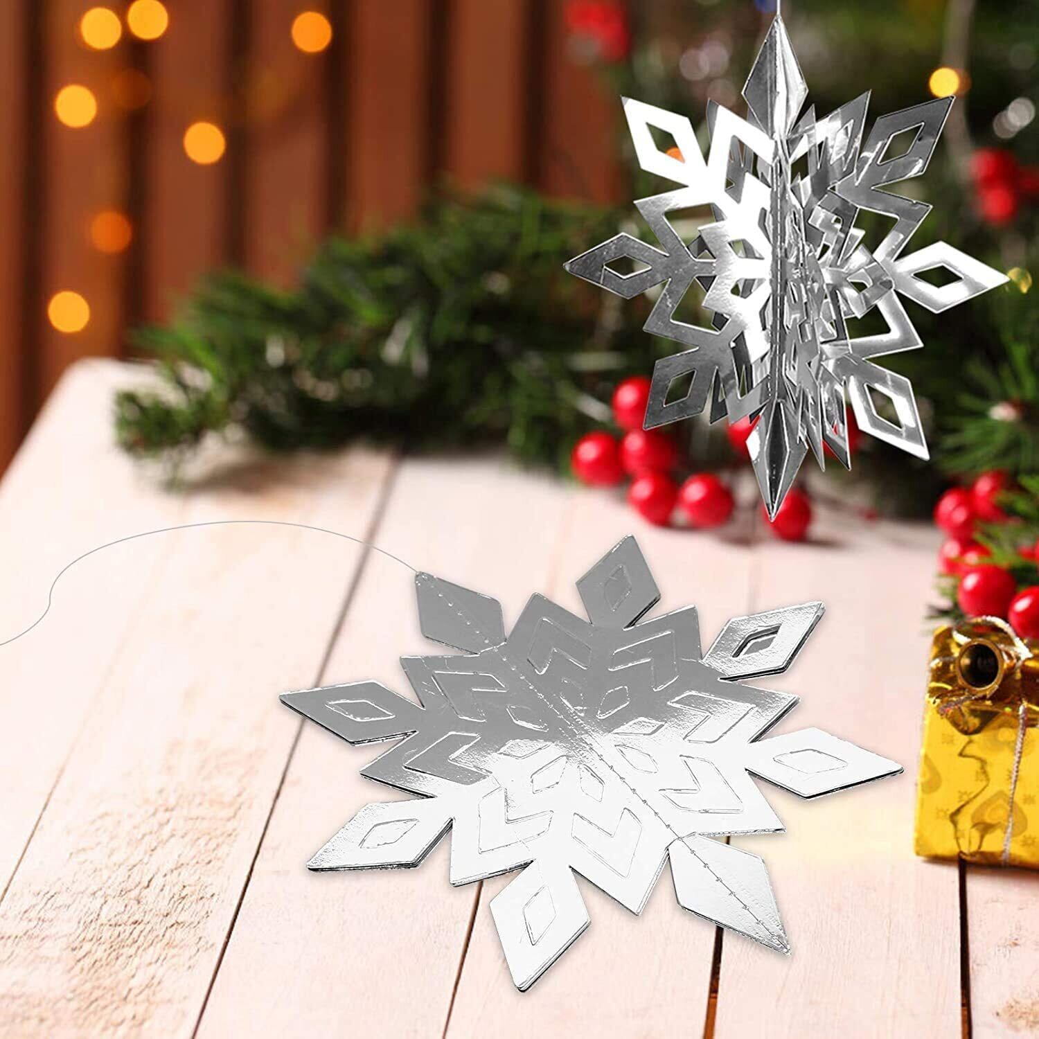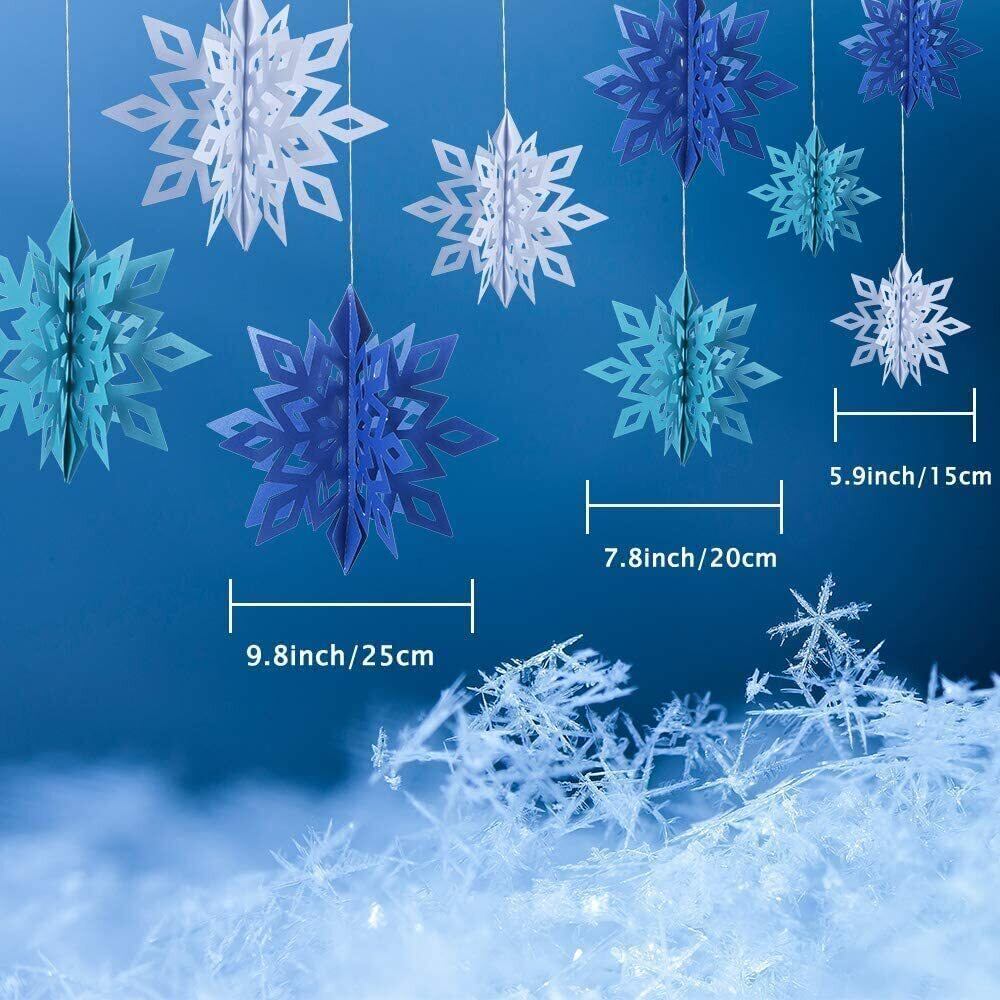 3Dスノーフレーク:大きいホワイトスノーフレークは3つのサイズがあって、9.8インチ、7.8インチと5.9インチ、各サイズに4枚スノーフレークがあります