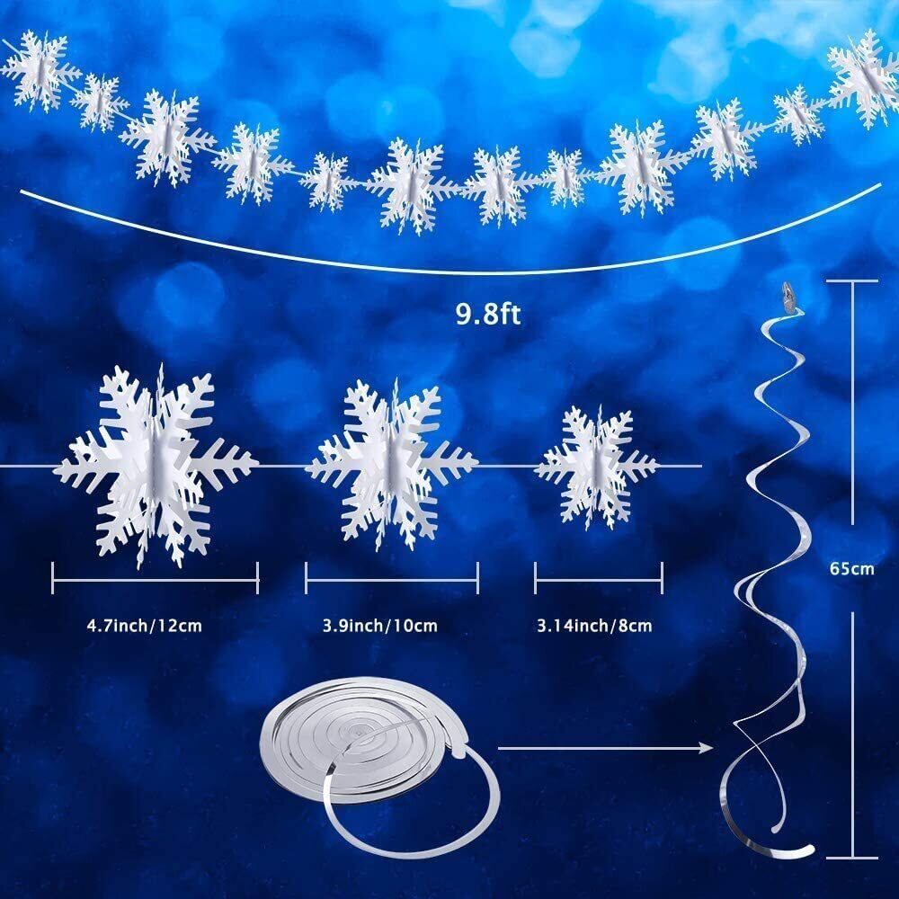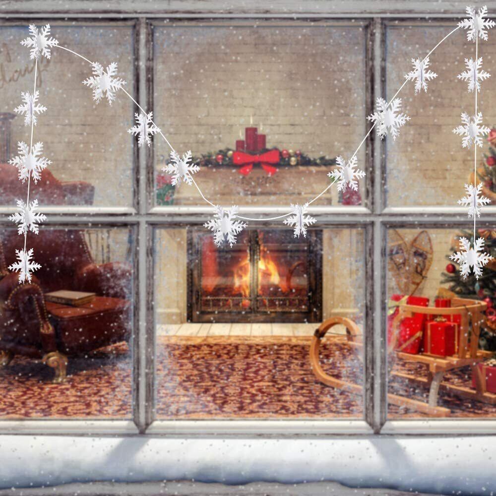 高品質:ホワイトスノーフレークガーランドは高級のパールペーパーで作られ、固くて防水で、しわになりにくいです。組み立てるのが完了です。もつれを避けるために急いでガーランドを展開しないでください