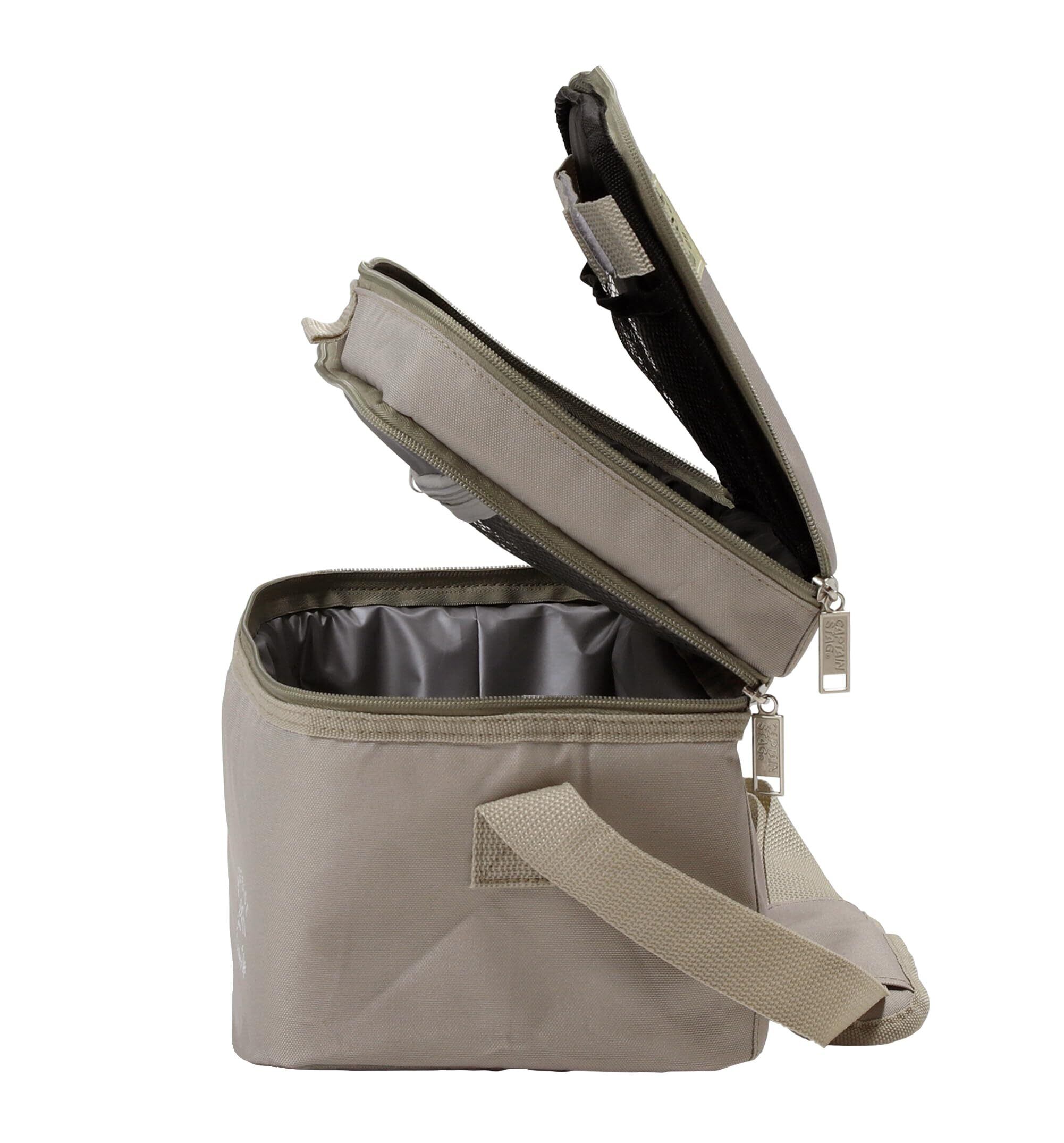 材質:本体表地/ポリエステル(PVCコーティング)、上段内生地/ポリエステル(PUコーティング)、下段内生地/EVA、断熱材/ポリエチレンフォーム、中敷/ポリエチレン、ベルト/ポリプロピレン、原産国:中国