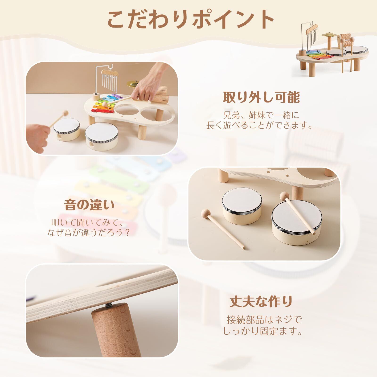 【素敵な贈り物】音楽遊びがたっぷり、大きさがちょうどいい木製おもちゃだから、兄弟・姉妹で一緒に遊べます!バチは本体に収納可能なので、お片付けにも簡単です。様々な楽器が一台で楽しめるのが最大の魅力です!