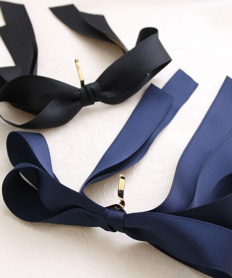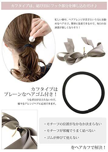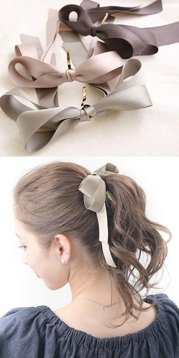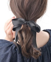 優雅な存在感とフェミニンな雰囲気を漂わせるヘアアクセサリーです。長めのリボンデザインがきれいに流れるように仕上がっており、ポニーテールやシニヨン、ハーフアップ等、様々なヘアアレンジに合わせて使えます。