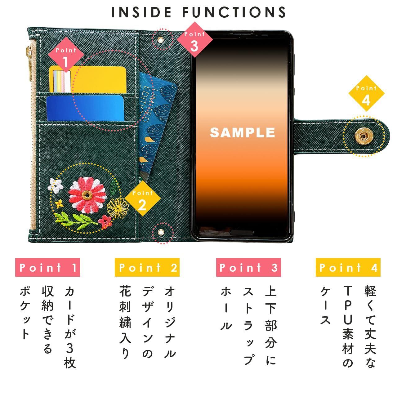 Google Pixel 7 用 ケース 手帳型 カバー 手帳型ケース Pixel7ケース Pixel7カバー Pixel7 Pixel7手帳型 Pixel7手帳 グーグル ピクセル スマホケース スマホカバー おしゃれ花刺繍 ダークグリーン | BASE SHOP