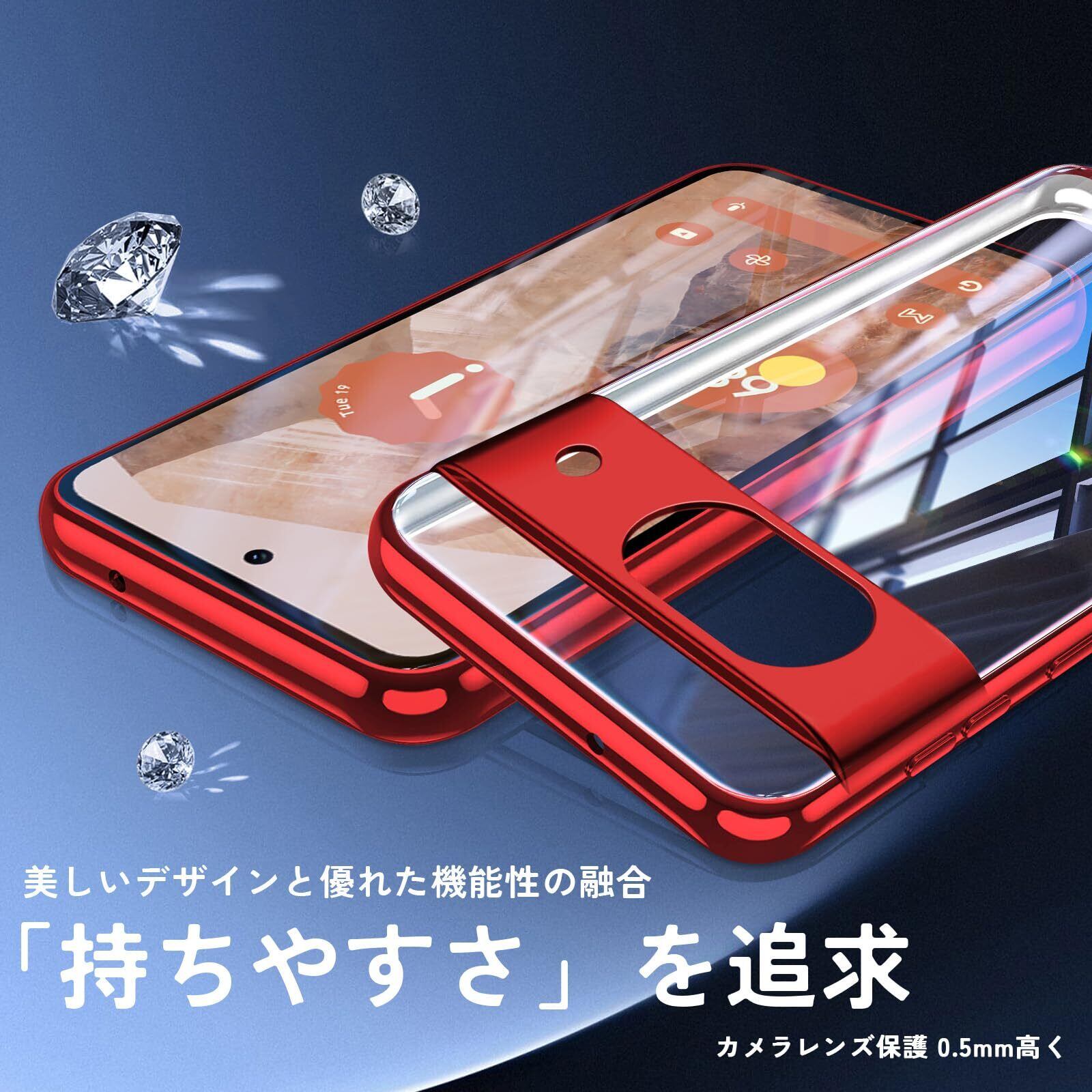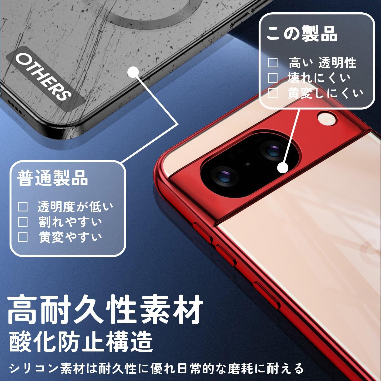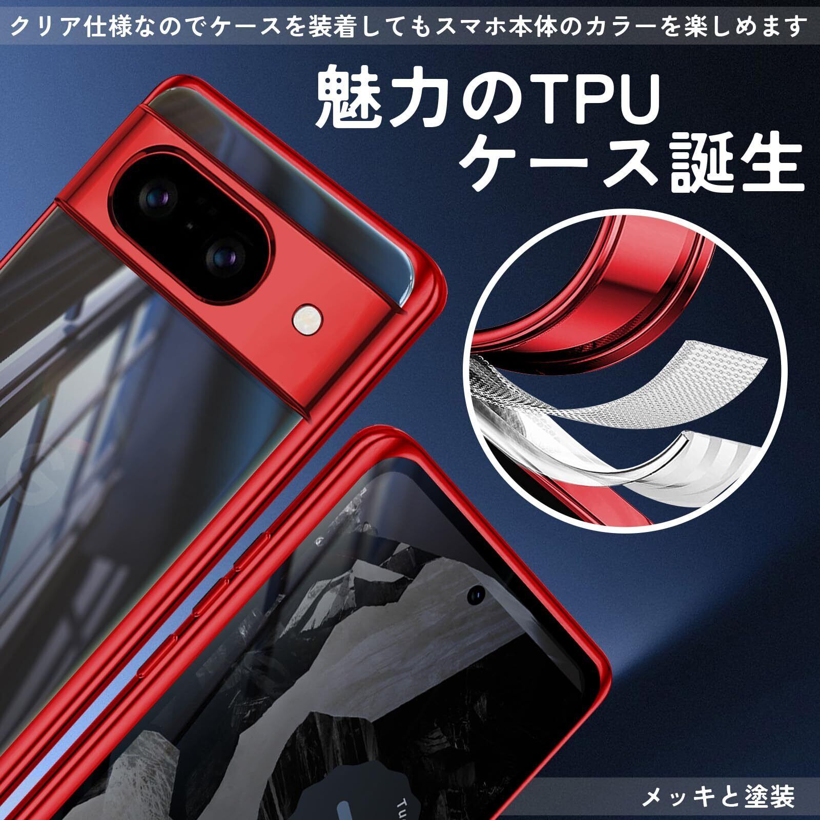 Google Pixel 8a ケース クリア TPU 薄型 ピクセル8A カバー スマホケース 耐衝撃 スリム 透明 シリコン 黄変防止 ストラップホール付き Pixel8a ケース レッド | BASE SHOP