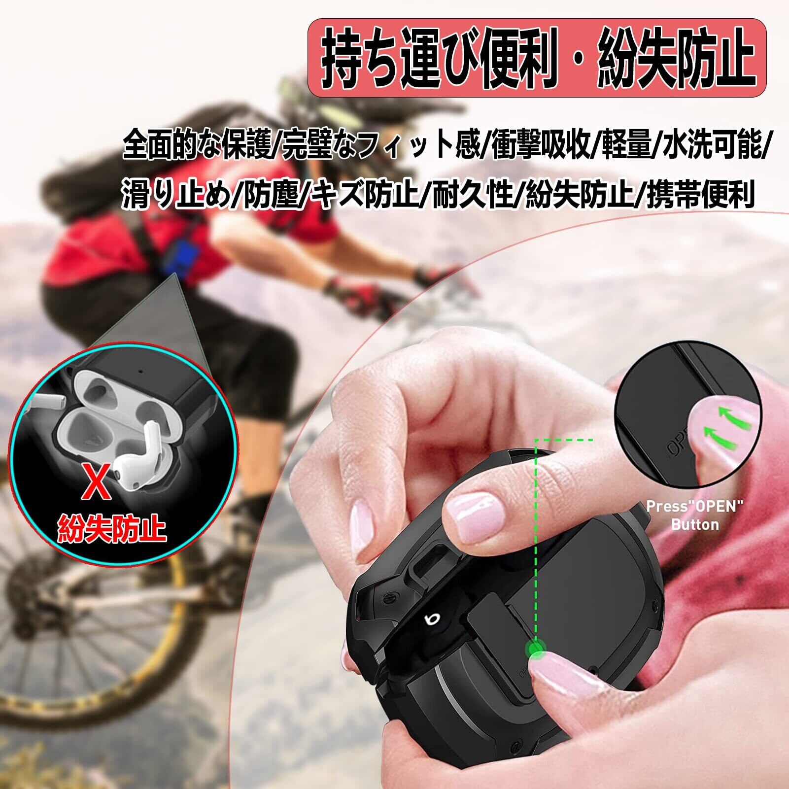 Beats Studio Buds + ケース Beats Studio Buds カバー Ausrann ハード TPU 安全なロック付き カラビナ付き ワイヤレス充電対応 LEDライトが見える 分離式 全面保護ケース 耐衝撃 落下防止 傷防止 防塵 (ブラック) | BASE SHOP