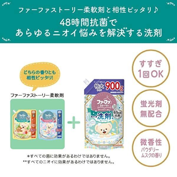 ファーファ 洗たく用 超コンパクト 液体 洗剤 ストーリー あわあわ ウォッシュ 微香性 パウダリー ムスク の香り 本体 ファーファ型 くま ボトル (450g) 1個